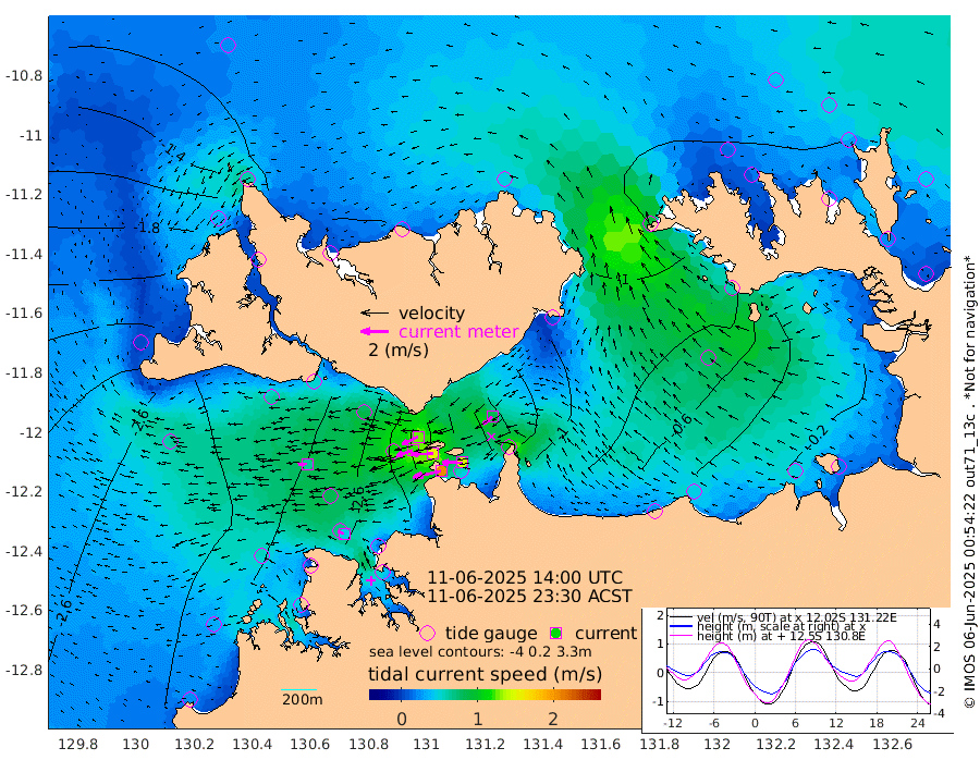 208cm/s -102T +4cm/s rms + 6cm/s 51T. Darwin_C1 52m 147cm/s -89T +4cm/s rms + 7cm/s -161T. Darwin_CW1 22m 121cm/s -108T +4cm/s rms + 8cm/s 61T. Darwin_CW2 34m 86cm/s -129T +3cm/s rms + 9cm/s 98T. Darwin_CW3 22m 157cm/s -91T +5cm/s rms + 7cm/s 88T. Darwin_C3 56m 127cm/s -115T +2cm/s rms + 9cm/s -126T. Darwin_CTbW 22m 64cm/s -94T +1cm/s rms + 1cm/s -47T. DARBGF 30m 48cm/s -65T +4cm/s rms + 3cm/s 80T. NRSDAR 19m -89cm Goodrich Bank -259cm Point Jenny -261cm Native Point -260cm Fish Reef -281cm Tapa Bay -187cm Point Fawcett (Offshore) -284cm Burge Point -257cm Munkunuwa -243cm Beagle A -267cm Parsons Bank -280cm Fenton Patches -263cm Hancox Shoal Area -289cm Nightcliff -293cm Darwin -288cm Charles Point Patches -193cm Glyde Point -107cm Chambers Bay -85cm Point Stuart -148cm Cape Hotham -109cm Christine Reef -81cm West Alligator Head -49cm East Field Island -107cm Two Hills Bay -120cm Camp Point -271cm Medina Inlet South -170cm South Barlow Point -142cm St. Asaph Bay -95cm Cape Van Dieman -105cm Snake Bay -95cm Cache Point -100cm Point Jahleel (Off) -119cm Cape Don -98cm Port Essington -101cm Smith Point - West -94cm NW Peacock Island -86cm North Of Jones Shoal -30cm Peacock Island -94cm Point David -99cm D'urville Point -89cm Copeland Island -93cm One Tree Point