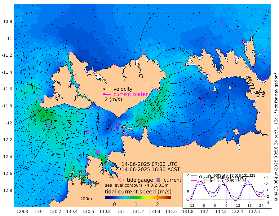 40cm/s -100T +4cm/s rms + 6cm/s 51T. Darwin_C1 52m 32cm/s -93T +4cm/s rms + 7cm/s -161T. Darwin_CW1 22m 11cm/s -109T +4cm/s rms + 8cm/s 61T. Darwin_CW2 34m 50cm/s -138T +3cm/s rms + 9cm/s 98T. Darwin_CW3 22m 33cm/s -90T +5cm/s rms + 7cm/s 88T. Darwin_C3 56m 12cm/s -112T +2cm/s rms + 9cm/s -126T. Darwin_CTbW 22m 35cm/s 98T +1cm/s rms + 1cm/s -47T. DARBGF 30m 37cm/s 132T +4cm/s rms + 3cm/s 80T. NRSDAR 19m 92cm Goodrich Bank 34cm Point Jenny 38cm Native Point 25cm Fish Reef 24cm Tapa Bay 74cm Point Fawcett (Offshore) 14cm Burge Point 24cm Munkunuwa 47cm Beagle A 7cm Parsons Bank 13cm Fenton Patches -6cm Hancox Shoal Area -11cm Nightcliff -3cm Darwin 23cm Charles Point Patches -29cm Glyde Point -89cm Chambers Bay -93cm Point Stuart -43cm Cape Hotham -74cm Christine Reef -114cm West Alligator Head -134cm East Field Island -52cm Two Hills Bay -41cm Camp Point 22cm Medina Inlet South 81cm South Barlow Point 85cm St. Asaph Bay 96cm Cape Van Dieman 96cm Snake Bay 88cm Cache Point 68cm Point Jahleel (Off) 33cm Cape Don 71cm Port Essington 68cm Smith Point - West 70cm NW Peacock Island 71cm North Of Jones Shoal 24cm Peacock Island 60cm Point David 70cm D'urville Point 53cm Copeland Island 56cm One Tree Point