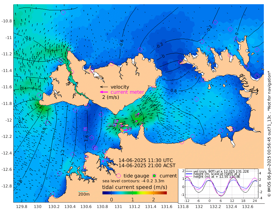 138cm/s 78T +4cm/s rms + 6cm/s 51T. Darwin_C1 52m 85cm/s 93T +4cm/s rms + 7cm/s -161T. Darwin_CW1 22m 50cm/s 70T +4cm/s rms + 8cm/s 61T. Darwin_CW2 34m 94cm/s 42T +3cm/s rms + 9cm/s 98T. Darwin_CW3 22m 81cm/s 90T +5cm/s rms + 7cm/s 88T. Darwin_C3 56m 63cm/s 65T +2cm/s rms + 9cm/s -126T. Darwin_CTbW 22m 17cm/s -76T +1cm/s rms + 1cm/s -47T. DARBGF 30m 25cm/s -42T +4cm/s rms + 3cm/s 80T. NRSDAR 19m -75cm Goodrich Bank 46cm Point Jenny 45cm Native Point 55cm Fish Reef 77cm Tapa Bay -32cm Point Fawcett (Offshore) 82cm Burge Point 63cm Munkunuwa 14cm Beagle A 106cm Parsons Bank 75cm Fenton Patches 115cm Hancox Shoal Area 108cm Nightcliff 121cm Darwin 88cm Charles Point Patches 106cm Glyde Point 116cm Chambers Bay 124cm Point Stuart 105cm Cape Hotham 98cm Christine Reef 136cm West Alligator Head 138cm East Field Island 93cm Two Hills Bay 91cm Camp Point 70cm Medina Inlet South -33cm South Barlow Point -59cm St. Asaph Bay -72cm Cape Van Dieman -60cm Snake Bay -68cm Cache Point -39cm Point Jahleel (Off) 17cm Cape Don -19cm Port Essington -21cm Smith Point - West -15cm NW Peacock Island -39cm North Of Jones Shoal -9cm Peacock Island 41cm Point David -7cm D'urville Point 47cm Copeland Island 27cm One Tree Point