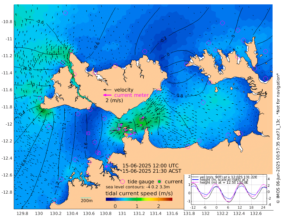 141cm/s 78T +4cm/s rms + 6cm/s 51T. Darwin_C1 52m 84cm/s 93T +4cm/s rms + 7cm/s -161T. Darwin_CW1 22m 53cm/s 71T +4cm/s rms + 8cm/s 61T. Darwin_CW2 34m 94cm/s 42T +3cm/s rms + 9cm/s 98T. Darwin_CW3 22m 85cm/s 90T +5cm/s rms + 7cm/s 88T. Darwin_C3 56m 65cm/s 65T +2cm/s rms + 9cm/s -126T. Darwin_CTbW 22m 11cm/s -69T +1cm/s rms + 1cm/s -47T. DARBGF 30m 17cm/s -34T +4cm/s rms + 3cm/s 80T. NRSDAR 19m -62cm Goodrich Bank 63cm Point Jenny 62cm Native Point 68cm Fish Reef 93cm Tapa Bay -16cm Point Fawcett (Offshore) 96cm Burge Point 77cm Munkunuwa 30cm Beagle A 118cm Parsons Bank 89cm Fenton Patches 127cm Hancox Shoal Area 119cm Nightcliff 132cm Darwin 102cm Charles Point Patches 110cm Glyde Point 114cm Chambers Bay 118cm Point Stuart 106cm Cape Hotham 98cm Christine Reef 128cm West Alligator Head 126cm East Field Island 92cm Two Hills Bay 90cm Camp Point 82cm Medina Inlet South -19cm South Barlow Point -45cm St. Asaph Bay -59cm Cape Van Dieman -49cm Snake Bay -55cm Cache Point -28cm Point Jahleel (Off) 25cm Cape Don -8cm Port Essington -8cm Smith Point - West -3cm NW Peacock Island -30cm North Of Jones Shoal -6cm Peacock Island 50cm Point David 5cm D'urville Point 56cm Copeland Island 35cm One Tree Point
