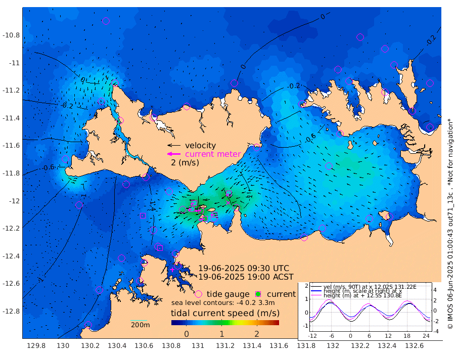96cm/s -101T +4cm/s rms + 6cm/s 51T. Darwin_C1 52m 61cm/s -91T +4cm/s rms + 7cm/s -161T. Darwin_CW1 22m 57cm/s -107T +4cm/s rms + 8cm/s 61T. Darwin_CW2 34m 53cm/s -136T +3cm/s rms + 9cm/s 98T. Darwin_CW3 22m 91cm/s -91T +5cm/s rms + 7cm/s 88T. Darwin_C3 56m 57cm/s -116T +2cm/s rms + 9cm/s -126T. Darwin_CTbW 22m 10cm/s -118T +1cm/s rms + 1cm/s -47T. DARBGF 30m 6cm/s -124T +4cm/s rms + 3cm/s 80T. NRSDAR 19m 14cm Goodrich Bank -120cm Point Jenny -118cm Native Point -125cm Fish Reef -135cm Tapa Bay -47cm Point Fawcett (Offshore) -146cm Burge Point -117cm Munkunuwa -108cm Beagle A -143cm Parsons Bank -150cm Fenton Patches -149cm Hancox Shoal Area -161cm Nightcliff -155cm Darwin -131cm Charles Point Patches -131cm Glyde Point -133cm Chambers Bay -127cm Point Stuart -123cm Cape Hotham -123cm Christine Reef -140cm West Alligator Head -138cm East Field Island -109cm Two Hills Bay -100cm Camp Point -123cm Medina Inlet South -33cm South Barlow Point -15cm St. Asaph Bay 12cm Cape Van Dieman 8cm Snake Bay 4cm Cache Point -13cm Point Jahleel (Off) -49cm Cape Don -12cm Port Essington -19cm Smith Point - West -16cm NW Peacock Island 1cm North Of Jones Shoal -1cm Peacock Island -32cm Point David -21cm D'urville Point -35cm Copeland Island -27cm One Tree Point