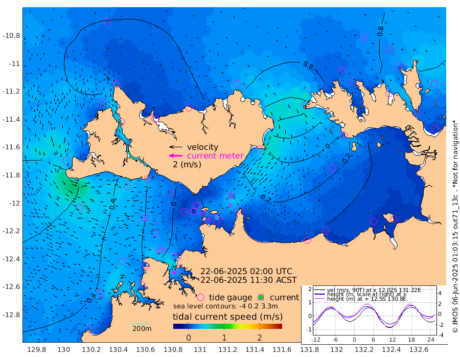 14cm/s -99T +4cm/s rms + 6cm/s 51T. Darwin_C1 52m 37cm/s -91T +4cm/s rms + 7cm/s -161T. Darwin_CW1 22m 1cm/s 91T +4cm/s rms + 8cm/s 61T. Darwin_CW2 34m 23cm/s -140T +3cm/s rms + 9cm/s 98T. Darwin_CW3 22m 15cm/s -89T +5cm/s rms + 7cm/s 88T. Darwin_C3 56m 2cm/s 45T +2cm/s rms + 9cm/s -126T. Darwin_CTbW 22m 31cm/s 96T +1cm/s rms + 1cm/s -47T. DARBGF 30m 32cm/s 127T +4cm/s rms + 3cm/s 80T. NRSDAR 19m 88cm Goodrich Bank 29cm Point Jenny 32cm Native Point 33cm Fish Reef 21cm Tapa Bay 74cm Point Fawcett (Offshore) 15cm Burge Point 24cm Munkunuwa 50cm Beagle A 13cm Parsons Bank 20cm Fenton Patches -1cm Hancox Shoal Area 1cm Nightcliff 8cm Darwin 25cm Charles Point Patches -14cm Glyde Point -54cm Chambers Bay -60cm Point Stuart -22cm Cape Hotham -49cm Christine Reef -74cm West Alligator Head -90cm East Field Island -24cm Two Hills Bay -28cm Camp Point 29cm Medina Inlet South 82cm South Barlow Point 83cm St. Asaph Bay 89cm Cape Van Dieman 94cm Snake Bay 86cm Cache Point 71cm Point Jahleel (Off) 40cm Cape Don 70cm Port Essington 71cm Smith Point - West 70cm NW Peacock Island 75cm North Of Jones Shoal 26cm Peacock Island 51cm Point David 70cm D'urville Point 45cm Copeland Island 55cm One Tree Point
