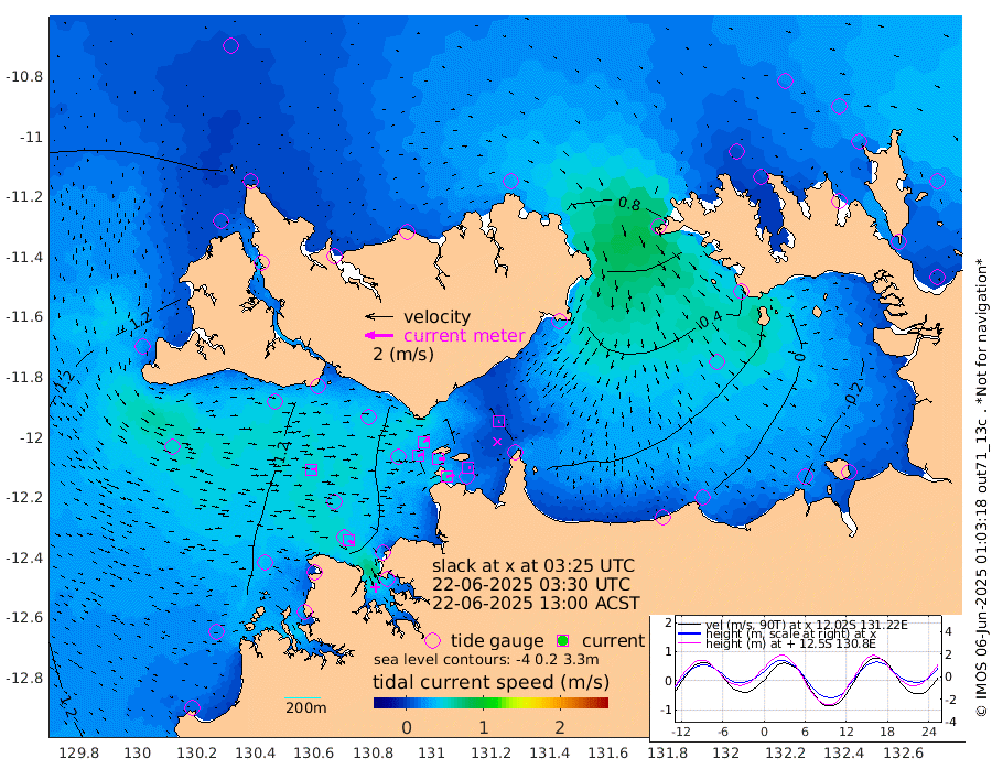 54cm/s 78T +4cm/s rms + 6cm/s 51T. Darwin_C1 52m 13cm/s 84T +4cm/s rms + 7cm/s -161T. Darwin_CW1 22m 40cm/s 74T +4cm/s rms + 8cm/s 61T. Darwin_CW2 34m 6cm/s 84T +3cm/s rms + 9cm/s 98T. Darwin_CW3 22m 42cm/s 88T +5cm/s rms + 7cm/s 88T. Darwin_C3 56m 46cm/s 63T +2cm/s rms + 9cm/s -126T. Darwin_CTbW 22m 42cm/s 92T +1cm/s rms + 1cm/s -47T. DARBGF 30m 41cm/s 122T +4cm/s rms + 3cm/s 80T. NRSDAR 19m 68cm Goodrich Bank 102cm Point Jenny 104cm Native Point 109cm Fish Reef 103cm Tapa Bay 97cm Point Fawcett (Offshore) 106cm Burge Point 103cm Munkunuwa 108cm Beagle A 105cm Parsons Bank 106cm Fenton Patches 87cm Hancox Shoal Area 93cm Nightcliff 103cm Darwin 105cm Charles Point Patches 58cm Glyde Point 2cm Chambers Bay -3cm Point Stuart 40cm Cape Hotham 3cm Christine Reef -13cm West Alligator Head -36cm East Field Island 26cm Two Hills Bay 19cm Camp Point 106cm Medina Inlet South 98cm South Barlow Point 83cm St. Asaph Bay 73cm Cape Van Dieman 81cm Snake Bay 72cm Cache Point 67cm Point Jahleel (Off) 64cm Cape Don 72cm Port Essington 74cm Smith Point - West 73cm NW Peacock Island 64cm North Of Jones Shoal 24cm Peacock Island 71cm Point David 77cm D'urville Point 67cm Copeland Island 70cm One Tree Point