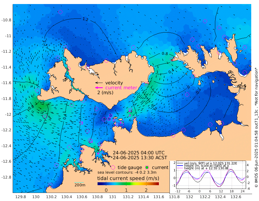 40cm/s -100T +4cm/s rms + 6cm/s 51T. Darwin_C1 52m 62cm/s -91T +4cm/s rms + 7cm/s -161T. Darwin_CW1 22m 9cm/s -112T +4cm/s rms + 8cm/s 61T. Darwin_CW2 34m 47cm/s -137T +3cm/s rms + 9cm/s 98T. Darwin_CW3 22m 33cm/s -91T +5cm/s rms + 7cm/s 88T. Darwin_C3 56m 5cm/s -102T +2cm/s rms + 9cm/s -126T. Darwin_CTbW 22m 37cm/s 97T +1cm/s rms + 1cm/s -47T. DARBGF 30m 38cm/s 130T +4cm/s rms + 3cm/s 80T. NRSDAR 19m 99cm Goodrich Bank 29cm Point Jenny 32cm Native Point 29cm Fish Reef 16cm Tapa Bay 82cm Point Fawcett (Offshore) 7cm Burge Point 14cm Munkunuwa 49cm Beagle A 4cm Parsons Bank 11cm Fenton Patches -9cm Hancox Shoal Area -8cm Nightcliff -2cm Darwin 23cm Charles Point Patches -21cm Glyde Point -63cm Chambers Bay -71cm Point Stuart -30cm Cape Hotham -57cm Christine Reef -89cm West Alligator Head -106cm East Field Island -30cm Two Hills Bay -31cm Camp Point 23cm Medina Inlet South 89cm South Barlow Point 92cm St. Asaph Bay 102cm Cape Van Dieman 106cm Snake Bay 99cm Cache Point 80cm Point Jahleel (Off) 49cm Cape Don 84cm Port Essington 84cm Smith Point - West 85cm NW Peacock Island 91cm North Of Jones Shoal 32cm Peacock Island 68cm Point David 85cm D'urville Point 62cm Copeland Island 72cm One Tree Point