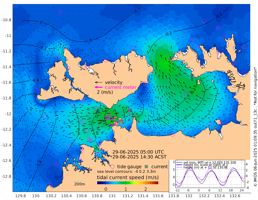 185cm/s -101T +4cm/s rms + 6cm/s 51T. Darwin_C1 52m 131cm/s -90T +4cm/s rms + 7cm/s -161T. Darwin_CW1 22m 88cm/s -107T +4cm/s rms + 8cm/s 61T. Darwin_CW2 34m 77cm/s -133T +3cm/s rms + 9cm/s 98T. Darwin_CW3 22m 116cm/s -91T +5cm/s rms + 7cm/s 88T. Darwin_C3 56m 102cm/s -115T +2cm/s rms + 9cm/s -126T. Darwin_CTbW 22m 48cm/s -91T +1cm/s rms + 1cm/s -47T. DARBGF 30m 44cm/s -68T +4cm/s rms + 3cm/s 80T. NRSDAR 19m 19cm Goodrich Bank -129cm Point Jenny -126cm Native Point -149cm Fish Reef -148cm Tapa Bay -63cm Point Fawcett (Offshore) -156cm Burge Point -156cm Munkunuwa -111cm Beagle A -167cm Parsons Bank -153cm Fenton Patches -155cm Hancox Shoal Area -163cm Nightcliff -172cm Darwin -152cm Charles Point Patches -102cm Glyde Point -48cm Chambers Bay -41cm Point Stuart -79cm Cape Hotham -39cm Christine Reef -41cm West Alligator Head -13cm East Field Island -50cm Two Hills Bay -36cm Camp Point -150cm Medina Inlet South -55cm South Barlow Point -26cm St. Asaph Bay 12cm Cape Van Dieman 7cm Snake Bay 11cm Cache Point -4cm Point Jahleel (Off) -35cm Cape Don -15cm Port Essington -21cm Smith Point - West -15cm NW Peacock Island 1cm North Of Jones Shoal -2cm Peacock Island -27cm Point David -24cm D'urville Point -32cm Copeland Island -25cm One Tree Point