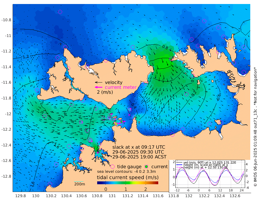 134cm/s 78T +4cm/s rms + 6cm/s 51T. Darwin_C1 52m 100cm/s 86T +4cm/s rms + 7cm/s -161T. Darwin_CW1 22m 49cm/s 76T +4cm/s rms + 8cm/s 61T. Darwin_CW2 34m 45cm/s 55T +3cm/s rms + 9cm/s 98T. Darwin_CW3 22m 63cm/s 88T +5cm/s rms + 7cm/s 88T. Darwin_C3 56m 77cm/s 63T +2cm/s rms + 9cm/s -126T. Darwin_CTbW 22m 55cm/s 92T +1cm/s rms + 1cm/s -47T. DARBGF 30m 53cm/s 119T +4cm/s rms + 3cm/s 80T. NRSDAR 19m 59cm Goodrich Bank 117cm Point Jenny 118cm Native Point 123cm Fish Reef 128cm Tapa Bay 109cm Point Fawcett (Offshore) 119cm Burge Point 131cm Munkunuwa 103cm Beagle A 129cm Parsons Bank 108cm Fenton Patches 112cm Hancox Shoal Area 119cm Nightcliff 131cm Darwin 138cm Charles Point Patches 53cm Glyde Point -30cm Chambers Bay -42cm Point Stuart 26cm Cape Hotham -29cm Christine Reef -60cm West Alligator Head -98cm East Field Island -1cm Two Hills Bay 1cm Camp Point 132cm Medina Inlet South 107cm South Barlow Point 88cm St. Asaph Bay 68cm Cape Van Dieman 77cm Snake Bay 62cm Cache Point 58cm Point Jahleel (Off) 60cm Cape Don 74cm Port Essington 72cm Smith Point - West 71cm NW Peacock Island 70cm North Of Jones Shoal 26cm Peacock Island 82cm Point David 78cm D'urville Point 79cm Copeland Island 81cm One Tree Point