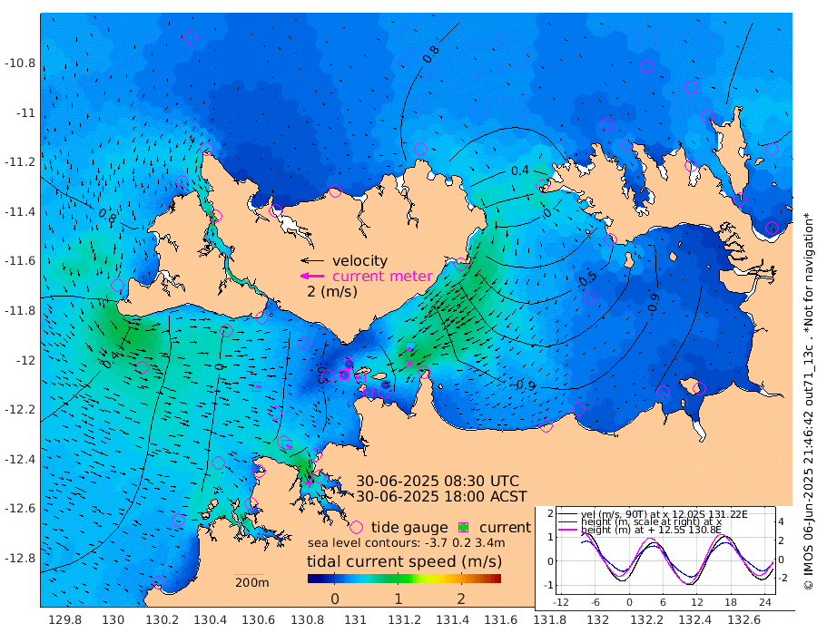 14cm/s -104T +4cm/s rms + 6cm/s 51T. Darwin_C1 52m 4cm/s -49T +4cm/s rms + 7cm/s -161T. Darwin_CW1 22m 14cm/s -108T +4cm/s rms + 8cm/s 61T. Darwin_CW2 34m 43cm/s -143T +3cm/s rms + 9cm/s 98T. Darwin_CW3 22m 39cm/s -89T +5cm/s rms + 7cm/s 88T. Darwin_C3 56m 5cm/s 53T +2cm/s rms + 9cm/s -126T. Darwin_CTbW 22m 37cm/s 99T +1cm/s rms + 1cm/s -47T. DARBGF 30m 40cm/s 130T +4cm/s rms + 3cm/s 80T. NRSDAR 19m 71cm Goodrich Bank -3cm Point Jenny 2cm Native Point -16cm Fish Reef -10cm Tapa Bay 49cm Point Fawcett (Offshore) -31cm Burge Point -2cm Munkunuwa 4cm Beagle A -29cm Parsons Bank -34cm Fenton Patches -39cm Hancox Shoal Area -35cm Nightcliff -41cm Darwin -14cm Charles Point Patches -72cm Glyde Point -128cm Chambers Bay -141cm Point Stuart -85cm Cape Hotham -113cm Christine Reef -164cm West Alligator Head -188cm East Field Island -94cm Two Hills Bay -78cm Camp Point -9cm Medina Inlet South 60cm South Barlow Point 66cm St. Asaph Bay 75cm Cape Van Dieman 76cm Snake Bay 63cm Cache Point 44cm Point Jahleel (Off) 4cm Cape Don 44cm Port Essington 42cm Smith Point - West 42cm NW Peacock Island 55cm North Of Jones Shoal 19cm Peacock Island 32cm Point David 42cm D'urville Point 25cm Copeland Island 31cm One Tree Point