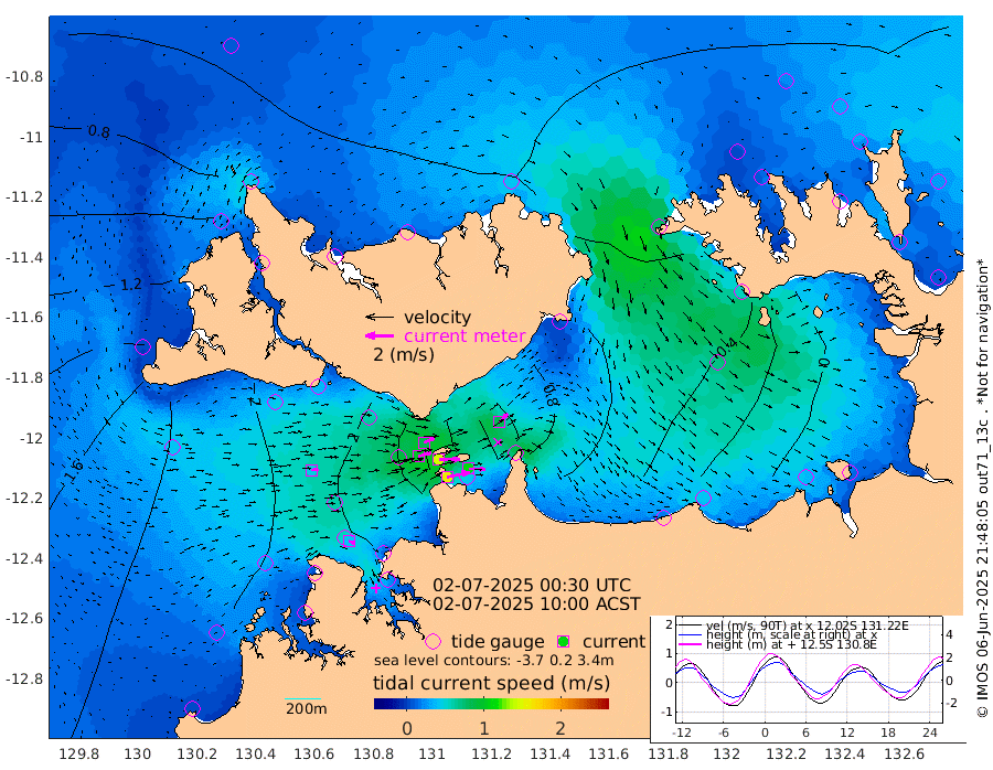 160cm/s 78T +4cm/s rms + 6cm/s 51T. Darwin_C1 52m 113cm/s 92T +4cm/s rms + 7cm/s -161T. Darwin_CW1 22m 96cm/s 73T +4cm/s rms + 8cm/s 61T. Darwin_CW2 34m 82cm/s 46T +3cm/s rms + 9cm/s 98T. Darwin_CW3 22m 145cm/s 89T +5cm/s rms + 7cm/s 88T. Darwin_C3 56m 83cm/s 65T +2cm/s rms + 9cm/s -126T. Darwin_CTbW 22m 47cm/s 85T +1cm/s rms + 1cm/s -47T. DARBGF 30m 44cm/s 112T +4cm/s rms + 3cm/s 80T. NRSDAR 19m 45cm Goodrich Bank 169cm Point Jenny 170cm Native Point 183cm Fish Reef 185cm Tapa Bay 117cm Point Fawcett (Offshore) 194cm Burge Point 183cm Munkunuwa 161cm Beagle A 191cm Parsons Bank 192cm Fenton Patches 178cm Hancox Shoal Area 197cm Nightcliff 207cm Darwin 196cm Charles Point Patches 130cm Glyde Point 70cm Chambers Bay 53cm Point Stuart 97cm Cape Hotham 65cm Christine Reef 52cm West Alligator Head 27cm East Field Island 71cm Two Hills Bay 67cm Camp Point 191cm Medina Inlet South 112cm South Barlow Point 85cm St. Asaph Bay 49cm Cape Van Dieman 59cm Snake Bay 49cm Cache Point 56cm Point Jahleel (Off) 75cm Cape Don 58cm Port Essington 62cm Smith Point - West 54cm NW Peacock Island 48cm North Of Jones Shoal 17cm Peacock Island 47cm Point David 60cm D'urville Point 46cm Copeland Island 53cm One Tree Point