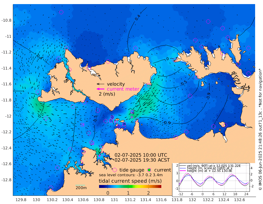 7cm/s -106T +4cm/s rms + 6cm/s 51T. Darwin_C1 52m 4cm/s -51T +4cm/s rms + 7cm/s -161T. Darwin_CW1 22m 13cm/s -105T +4cm/s rms + 8cm/s 61T. Darwin_CW2 34m 30cm/s -146T +3cm/s rms + 9cm/s 98T. Darwin_CW3 22m 40cm/s -88T +5cm/s rms + 7cm/s 88T. Darwin_C3 56m 5cm/s 53T +2cm/s rms + 9cm/s -126T. Darwin_CTbW 22m 26cm/s 101T +1cm/s rms + 1cm/s -47T. DARBGF 30m 30cm/s 129T +4cm/s rms + 3cm/s 80T. NRSDAR 19m 37cm Goodrich Bank -27cm Point Jenny -22cm Native Point -42cm Fish Reef -29cm Tapa Bay 11cm Point Fawcett (Offshore) -51cm Burge Point -16cm Munkunuwa -25cm Beagle A -43cm Parsons Bank -53cm Fenton Patches -50cm Hancox Shoal Area -52cm Nightcliff -57cm Darwin -38cm Charles Point Patches -82cm Glyde Point -128cm Chambers Bay -141cm Point Stuart -94cm Cape Hotham -114cm Christine Reef -159cm West Alligator Head -181cm East Field Island -102cm Two Hills Bay -87cm Camp Point -32cm Medina Inlet South 26cm South Barlow Point 31cm St. Asaph Bay 41cm Cape Van Dieman 41cm Snake Bay 27cm Cache Point 13cm Point Jahleel (Off) -22cm Cape Don 14cm Port Essington 12cm Smith Point - West 13cm NW Peacock Island 20cm North Of Jones Shoal 6cm Peacock Island 7cm Point David 13cm D'urville Point 3cm Copeland Island 2cm One Tree Point