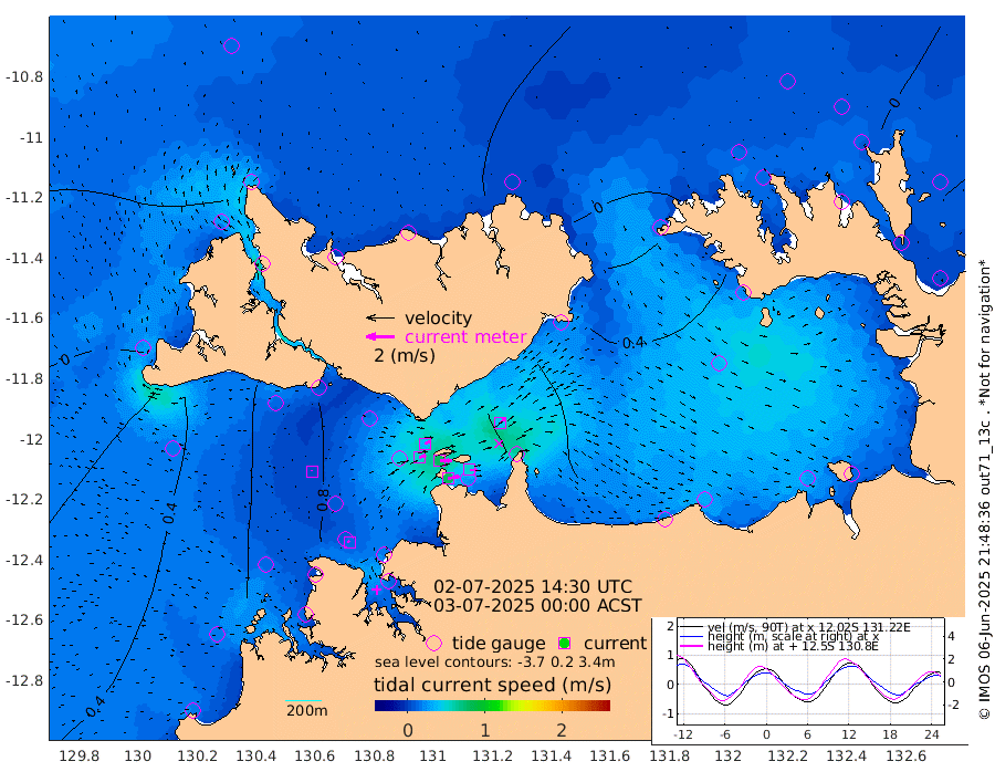 79cm/s 80T +4cm/s rms + 6cm/s 51T. Darwin_C1 52m 51cm/s 92T +4cm/s rms + 7cm/s -161T. Darwin_CW1 22m 49cm/s 71T +4cm/s rms + 8cm/s 61T. Darwin_CW2 34m 43cm/s 48T +3cm/s rms + 9cm/s 98T. Darwin_CW3 22m 81cm/s 89T +5cm/s rms + 7cm/s 88T. Darwin_C3 56m 39cm/s 66T +2cm/s rms + 9cm/s -126T. Darwin_CTbW 22m 3cm/s 1T +1cm/s rms + 1cm/s -47T. DARBGF 30m 12cm/s -37T +4cm/s rms + 3cm/s 80T. NRSDAR 19m -44cm Goodrich Bank 43cm Point Jenny 39cm Native Point 56cm Fish Reef 61cm Tapa Bay 6cm Point Fawcett (Offshore) 57cm Burge Point 55cm Munkunuwa 16cm Beagle A 76cm Parsons Bank 49cm Fenton Patches 80cm Hancox Shoal Area 77cm Nightcliff 84cm Darwin 66cm Charles Point Patches 72cm Glyde Point 90cm Chambers Bay 92cm Point Stuart 78cm Cape Hotham 67cm Christine Reef 102cm West Alligator Head 97cm East Field Island 74cm Two Hills Bay 55cm Camp Point 59cm Medina Inlet South -12cm South Barlow Point -24cm St. Asaph Bay -41cm Cape Van Dieman -36cm Snake Bay -33cm Cache Point -17cm Point Jahleel (Off) 22cm Cape Don -4cm Port Essington -4cm Smith Point - West -4cm NW Peacock Island -11cm North Of Jones Shoal -2cm Peacock Island 25cm Point David 1cm D'urville Point 30cm Copeland Island 23cm One Tree Point