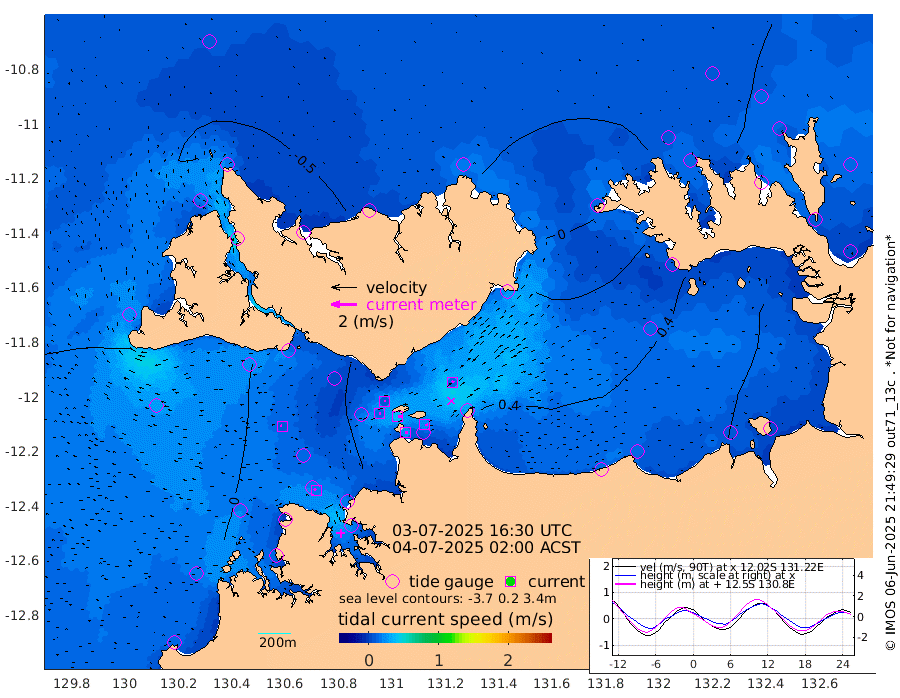 21cm/s 82T +4cm/s rms + 6cm/s 51T. Darwin_C1 52m 21cm/s 89T +4cm/s rms + 7cm/s -161T. Darwin_CW1 22m 15cm/s 75T +4cm/s rms + 8cm/s 61T. Darwin_CW2 34m 15cm/s 42T +3cm/s rms + 9cm/s 98T. Darwin_CW3 22m 38cm/s 90T +5cm/s rms + 7cm/s 88T. Darwin_C3 56m 10cm/s 70T +2cm/s rms + 9cm/s -126T. Darwin_CTbW 22m 11cm/s -78T +1cm/s rms + 1cm/s -47T. DARBGF 30m 18cm/s -50T +4cm/s rms + 3cm/s 80T. NRSDAR 19m -45cm Goodrich Bank 9cm Point Jenny 3cm Native Point 18cm Fish Reef 16cm Tapa Bay -13cm Point Fawcett (Offshore) 15cm Burge Point 7cm Munkunuwa -7cm Beagle A 21cm Parsons Bank 12cm Fenton Patches 32cm Hancox Shoal Area 29cm Nightcliff 29cm Darwin 15cm Charles Point Patches 46cm Glyde Point 85cm Chambers Bay 93cm Point Stuart 61cm Cape Hotham 65cm Christine Reef 107cm West Alligator Head 115cm East Field Island 66cm Two Hills Bay 48cm Camp Point 12cm Medina Inlet South -35cm South Barlow Point -34cm St. Asaph Bay -45cm Cape Van Dieman -46cm Snake Bay -35cm Cache Point -22cm Point Jahleel (Off) 5cm Cape Don -20cm Port Essington -19cm Smith Point - West -19cm NW Peacock Island -21cm North Of Jones Shoal -6cm Peacock Island -2cm Point David -18cm D'urville Point 3cm Copeland Island -2cm One Tree Point