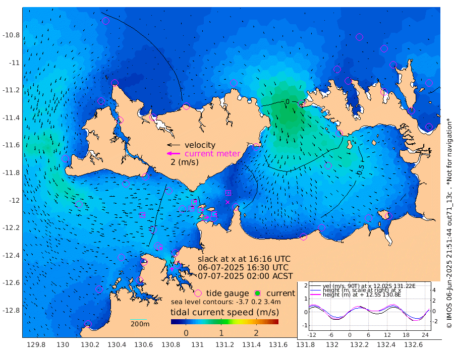 66cm/s 77T +4cm/s rms + 6cm/s 51T. Darwin_C1 52m 33cm/s 87T +4cm/s rms + 7cm/s -161T. Darwin_CW1 22m 42cm/s 74T +4cm/s rms + 8cm/s 61T. Darwin_CW2 34m 14cm/s 76T +3cm/s rms + 9cm/s 98T. Darwin_CW3 22m 46cm/s 86T +5cm/s rms + 7cm/s 88T. Darwin_C3 56m 51cm/s 64T +2cm/s rms + 9cm/s -126T. Darwin_CTbW 22m 37cm/s 91T +1cm/s rms + 1cm/s -47T. DARBGF 30m 37cm/s 119T +4cm/s rms + 3cm/s 80T. NRSDAR 19m 13cm Goodrich Bank 61cm Point Jenny 59cm Native Point 51cm Fish Reef 63cm Tapa Bay 47cm Point Fawcett (Offshore) 42cm Burge Point 60cm Munkunuwa 49cm Beagle A 48cm Parsons Bank 48cm Fenton Patches 51cm Hancox Shoal Area 61cm Nightcliff 43cm Darwin 47cm Charles Point Patches 12cm Glyde Point -9cm Chambers Bay -30cm Point Stuart -1cm Cape Hotham -10cm Christine Reef -34cm West Alligator Head -54cm East Field Island -11cm Two Hills Bay -16cm Camp Point 52cm Medina Inlet South 37cm South Barlow Point 35cm St. Asaph Bay 16cm Cape Van Dieman 14cm Snake Bay 15cm Cache Point 14cm Point Jahleel (Off) 10cm Cape Don 10cm Port Essington 18cm Smith Point - West 11cm NW Peacock Island 12cm North Of Jones Shoal 4cm Peacock Island 3cm Point David 15cm D'urville Point 4cm Copeland Island 2cm One Tree Point