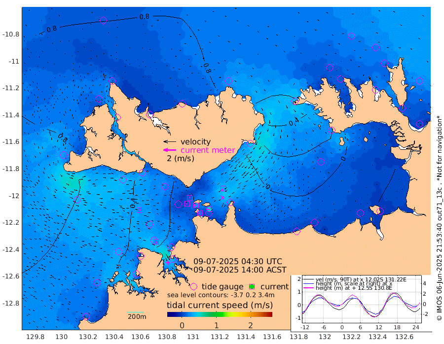 19cm/s -101T +4cm/s rms + 6cm/s 51T. Darwin_C1 52m 49cm/s -90T +4cm/s rms + 7cm/s -161T. Darwin_CW1 22m 8cm/s -109T +4cm/s rms + 8cm/s 61T. Darwin_CW2 34m 34cm/s -139T +3cm/s rms + 9cm/s 98T. Darwin_CW3 22m 29cm/s -92T +5cm/s rms + 7cm/s 88T. Darwin_C3 56m 8cm/s 54T +2cm/s rms + 9cm/s -126T. Darwin_CTbW 22m 22cm/s 98T +1cm/s rms + 1cm/s -47T. DARBGF 30m 22cm/s 132T +4cm/s rms + 3cm/s 80T. NRSDAR 19m 64cm Goodrich Bank 31cm Point Jenny 35cm Native Point 21cm Fish Reef 26cm Tapa Bay 52cm Point Fawcett (Offshore) 20cm Burge Point 20cm Munkunuwa 39cm Beagle A 18cm Parsons Bank 20cm Fenton Patches 12cm Hancox Shoal Area 15cm Nightcliff 10cm Darwin 21cm Charles Point Patches -3cm Glyde Point -33cm Chambers Bay -38cm Point Stuart -9cm Cape Hotham -23cm Christine Reef -50cm West Alligator Head -62cm East Field Island -12cm Two Hills Bay -7cm Camp Point 22cm Medina Inlet South 59cm South Barlow Point 58cm St. Asaph Bay 67cm Cape Van Dieman 72cm Snake Bay 63cm Cache Point 54cm Point Jahleel (Off) 36cm Cape Don 55cm Port Essington 56cm Smith Point - West 59cm NW Peacock Island 57cm North Of Jones Shoal 20cm Peacock Island 60cm Point David 60cm D'urville Point 55cm Copeland Island 56cm One Tree Point