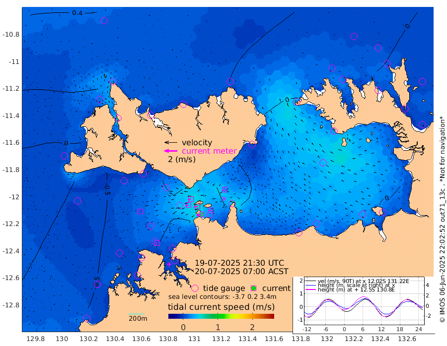 69cm/s -102T +4cm/s rms + 6cm/s 51T. Darwin_C1 52m 29cm/s -88T +4cm/s rms + 7cm/s -161T. Darwin_CW1 22m 44cm/s -108T +4cm/s rms + 8cm/s 61T. Darwin_CW2 34m 24cm/s -124T +3cm/s rms + 9cm/s 98T. Darwin_CW3 22m 58cm/s -92T +5cm/s rms + 7cm/s 88T. Darwin_C3 56m 45cm/s -116T +2cm/s rms + 9cm/s -126T. Darwin_CTbW 22m 10cm/s -97T +1cm/s rms + 1cm/s -47T. DARBGF 30m 9cm/s -84T +4cm/s rms + 3cm/s 80T. NRSDAR 19m 46cm Goodrich Bank -31cm Point Jenny -30cm Native Point -34cm Fish Reef -40cm Tapa Bay 11cm Point Fawcett (Offshore) -44cm Burge Point -51cm Munkunuwa -8cm Beagle A -60cm Parsons Bank -33cm Fenton Patches -50cm Hancox Shoal Area -47cm Nightcliff -52cm Darwin -33cm Charles Point Patches -33cm Glyde Point -22cm Chambers Bay -28cm Point Stuart -28cm Cape Hotham -17cm Christine Reef -31cm West Alligator Head -17cm East Field Island -23cm Two Hills Bay -9cm Camp Point -39cm Medina Inlet South 13cm South Barlow Point 31cm St. Asaph Bay 41cm Cape Van Dieman 38cm Snake Bay 42cm Cache Point 29cm Point Jahleel (Off) 0cm Cape Don 18cm Port Essington 16cm Smith Point - West 17cm NW Peacock Island 32cm North Of Jones Shoal 9cm Peacock Island -7cm Point David 11cm D'urville Point -10cm Copeland Island -1cm One Tree Point