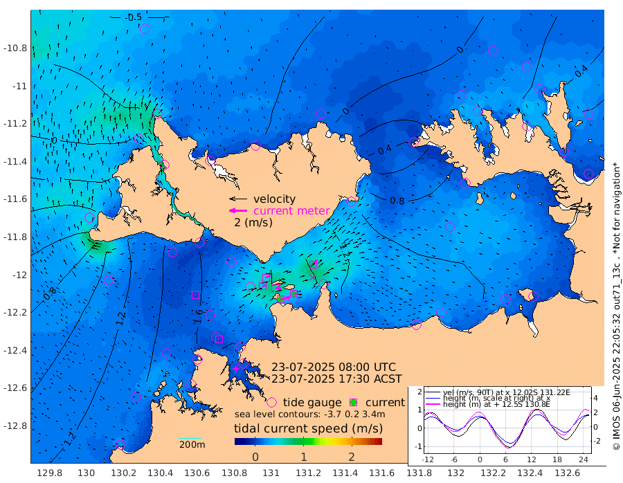106cm/s 78T +4cm/s rms + 6cm/s 51T. Darwin_C1 52m 81cm/s 91T +4cm/s rms + 7cm/s -161T. Darwin_CW1 22m 41cm/s 71T +4cm/s rms + 8cm/s 61T. Darwin_CW2 34m 69cm/s 41T +3cm/s rms + 9cm/s 98T. Darwin_CW3 22m 62cm/s 90T +5cm/s rms + 7cm/s 88T. Darwin_C3 56m 51cm/s 64T +2cm/s rms + 9cm/s -126T. Darwin_CTbW 22m 4cm/s -47T +1cm/s rms + 1cm/s -47T. DARBGF 30m 7cm/s -25T +4cm/s rms + 3cm/s 80T. NRSDAR 19m -50cm Goodrich Bank 78cm Point Jenny 77cm Native Point 92cm Fish Reef 97cm Tapa Bay 1cm Point Fawcett (Offshore) 116cm Burge Point 83cm Munkunuwa 60cm Beagle A 120cm Parsons Bank 111cm Fenton Patches 119cm Hancox Shoal Area 115cm Nightcliff 133cm Darwin 108cm Charles Point Patches 114cm Glyde Point 103cm Chambers Bay 117cm Point Stuart 106cm Cape Hotham 92cm Christine Reef 124cm West Alligator Head 125cm East Field Island 91cm Two Hills Bay 90cm Camp Point 91cm Medina Inlet South -5cm South Barlow Point -31cm St. Asaph Bay -46cm Cape Van Dieman -41cm Snake Bay -41cm Cache Point -20cm Point Jahleel (Off) 32cm Cape Don 0cm Port Essington -3cm Smith Point - West 1cm NW Peacock Island -27cm North Of Jones Shoal -5cm Peacock Island 44cm Point David 9cm D'urville Point 49cm Copeland Island 33cm One Tree Point