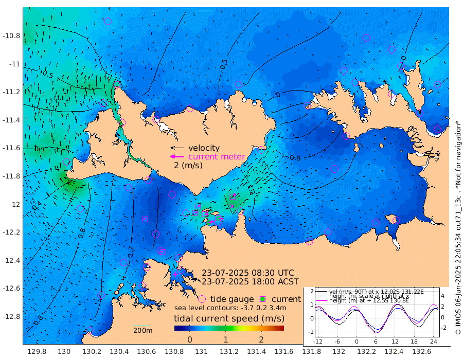 86cm/s 79T +4cm/s rms + 6cm/s 51T. Darwin_C1 52m 72cm/s 92T +4cm/s rms + 7cm/s -161T. Darwin_CW1 22m 33cm/s 68T +4cm/s rms + 8cm/s 61T. Darwin_CW2 34m 64cm/s 40T +3cm/s rms + 9cm/s 98T. Darwin_CW3 22m 51cm/s 90T +5cm/s rms + 7cm/s 88T. Darwin_C3 56m 39cm/s 64T +2cm/s rms + 9cm/s -126T. Darwin_CTbW 22m 18cm/s -78T +1cm/s rms + 1cm/s -47T. DARBGF 30m 23cm/s -51T +4cm/s rms + 3cm/s 80T. NRSDAR 19m -71cm Goodrich Bank 49cm Point Jenny 48cm Native Point 62cm Fish Reef 69cm Tapa Bay -30cm Point Fawcett (Offshore) 90cm Burge Point 56cm Munkunuwa 30cm Beagle A 95cm Parsons Bank 86cm Fenton Patches 98cm Hancox Shoal Area 91cm Nightcliff 109cm Darwin 80cm Charles Point Patches 102cm Glyde Point 106cm Chambers Bay 123cm Point Stuart 99cm Cape Hotham 95cm Christine Reef 134cm West Alligator Head 142cm East Field Island 87cm Two Hills Bay 88cm Camp Point 63cm Medina Inlet South -34cm South Barlow Point -58cm St. Asaph Bay -68cm Cape Van Dieman -64cm Snake Bay -63cm Cache Point -40cm Point Jahleel (Off) 14cm Cape Don -21cm Port Essington -25cm Smith Point - West -19cm NW Peacock Island -48cm North Of Jones Shoal -13cm Peacock Island 26cm Point David -13cm D'urville Point 33cm Copeland Island 14cm One Tree Point