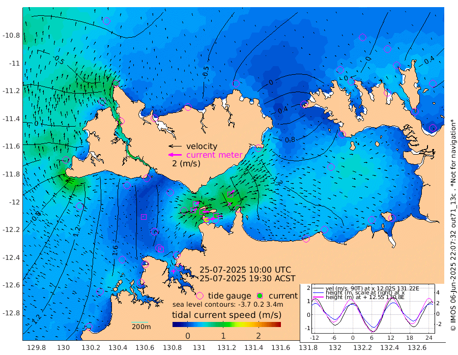 135cm/s 79T +4cm/s rms + 6cm/s 51T. Darwin_C1 52m 100cm/s 92T +4cm/s rms + 7cm/s -161T. Darwin_CW1 22m 66cm/s 70T +4cm/s rms + 8cm/s 61T. Darwin_CW2 34m 87cm/s 43T +3cm/s rms + 9cm/s 98T. Darwin_CW3 22m 97cm/s 89T +5cm/s rms + 7cm/s 88T. Darwin_C3 56m 62cm/s 65T +2cm/s rms + 9cm/s -126T. Darwin_CTbW 22m 10cm/s -56T +1cm/s rms + 1cm/s -47T. DARBGF 30m 20cm/s -44T +4cm/s rms + 3cm/s 80T. NRSDAR 19m -66cm Goodrich Bank 97cm Point Jenny 94cm Native Point 117cm Fish Reef 124cm Tapa Bay 2cm Point Fawcett (Offshore) 148cm Burge Point 112cm Munkunuwa 68cm Beagle A 158cm Parsons Bank 137cm Fenton Patches 157cm Hancox Shoal Area 150cm Nightcliff 177cm Darwin 144cm Charles Point Patches 146cm Glyde Point 139cm Chambers Bay 151cm Point Stuart 138cm Cape Hotham 121cm Christine Reef 163cm West Alligator Head 163cm East Field Island 118cm Two Hills Bay 114cm Camp Point 122cm Medina Inlet South -7cm South Barlow Point -39cm St. Asaph Bay -62cm Cape Van Dieman -55cm Snake Bay -55cm Cache Point -28cm Point Jahleel (Off) 39cm Cape Don -3cm Port Essington -7cm Smith Point - West -3cm NW Peacock Island -32cm North Of Jones Shoal -7cm Peacock Island 47cm Point David 6cm D'urville Point 54cm Copeland Island 37cm One Tree Point