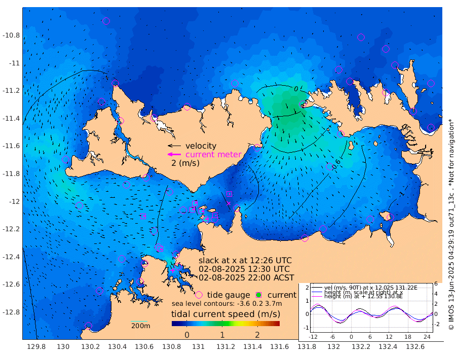 53cm/s 77T +4cm/s rms + 6cm/s 51T. Darwin_C1 52m 14cm/s 90T +4cm/s rms + 7cm/s -161T. Darwin_CW1 22m 39cm/s 72T +4cm/s rms + 8cm/s 61T. Darwin_CW2 34m 12cm/s 79T +3cm/s rms + 9cm/s 98T. Darwin_CW3 22m 37cm/s 85T +5cm/s rms + 7cm/s 88T. Darwin_C3 56m 36cm/s 63T +2cm/s rms + 9cm/s -126T. Darwin_CTbW 22m 32cm/s 92T +1cm/s rms + 1cm/s -47T. DARBGF 30m 34cm/s 116T +4cm/s rms + 3cm/s 80T. NRSDAR 19m 10cm Goodrich Bank 36cm Point Jenny 38cm Native Point 25cm Fish Reef 44cm Tapa Bay 23cm Point Fawcett (Offshore) 27cm Burge Point 55cm Munkunuwa 22cm Beagle A 43cm Parsons Bank 26cm Fenton Patches 37cm Hancox Shoal Area 37cm Nightcliff 32cm Darwin 36cm Charles Point Patches -14cm Glyde Point -55cm Chambers Bay -77cm Point Stuart -33cm Cape Hotham -49cm Christine Reef -87cm West Alligator Head -113cm East Field Island -48cm Two Hills Bay -44cm Camp Point 38cm Medina Inlet South 33cm South Barlow Point 24cm St. Asaph Bay 13cm Cape Van Dieman 14cm Snake Bay 4cm Cache Point 4cm Point Jahleel (Off) -6cm Cape Don 6cm Port Essington 11cm Smith Point - West 7cm NW Peacock Island 3cm North Of Jones Shoal 1cm Peacock Island 5cm Point David 11cm D'urville Point 5cm Copeland Island 0cm One Tree Point