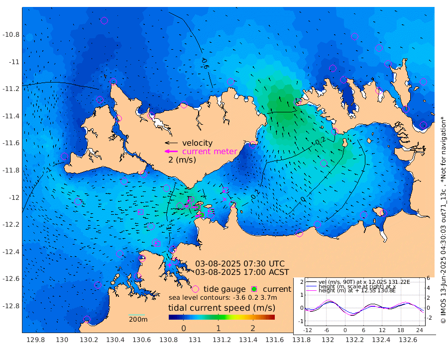 105cm/s -102T +4cm/s rms + 6cm/s 51T. Darwin_C1 52m 54cm/s -90T +4cm/s rms + 7cm/s -161T. Darwin_CW1 22m 65cm/s -106T +4cm/s rms + 8cm/s 61T. Darwin_CW2 34m 39cm/s -127T +3cm/s rms + 9cm/s 98T. Darwin_CW3 22m 86cm/s -91T +5cm/s rms + 7cm/s 88T. Darwin_C3 56m 68cm/s -115T +2cm/s rms + 9cm/s -126T. Darwin_CTbW 22m 38cm/s -93T +1cm/s rms + 1cm/s -47T. DARBGF 30m 32cm/s -67T +4cm/s rms + 3cm/s 80T. NRSDAR 19m -57cm Goodrich Bank -122cm Point Jenny -123cm Native Point -115cm Fish Reef -133cm Tapa Bay -98cm Point Fawcett (Offshore) -124cm Burge Point -125cm Munkunuwa -112cm Beagle A -125cm Parsons Bank -122cm Fenton Patches -124cm Hancox Shoal Area -137cm Nightcliff -130cm Darwin -130cm Charles Point Patches -76cm Glyde Point -37cm Chambers Bay -15cm Point Stuart -56cm Cape Hotham -38cm Christine Reef -12cm West Alligator Head 11cm East Field Island -38cm Two Hills Bay -38cm Camp Point -126cm Medina Inlet South -93cm South Barlow Point -83cm St. Asaph Bay -60cm Cape Van Dieman -65cm Snake Bay -59cm Cache Point -59cm Point Jahleel (Off) -57cm Cape Don -53cm Port Essington -60cm Smith Point - West -55cm NW Peacock Island -55cm North Of Jones Shoal -18cm Peacock Island -48cm Point David -57cm D'urville Point -45cm Copeland Island -48cm One Tree Point