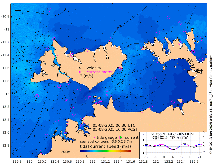 19cm/s 77T +4cm/s rms + 6cm/s 51T. Darwin_C1 52m 21cm/s 88T +4cm/s rms + 7cm/s -161T. Darwin_CW1 22m 3cm/s -100T +4cm/s rms + 8cm/s 61T. Darwin_CW2 34m 22cm/s 33T +3cm/s rms + 9cm/s 98T. Darwin_CW3 22m 1cm/s 146T +5cm/s rms + 7cm/s 88T. Darwin_C3 56m 10cm/s 67T +2cm/s rms + 9cm/s -126T. Darwin_CTbW 22m 14cm/s -88T +1cm/s rms + 1cm/s -47T. DARBGF 30m 13cm/s -54T +4cm/s rms + 3cm/s 80T. NRSDAR 19m -48cm Goodrich Bank -19cm Point Jenny -21cm Native Point -10cm Fish Reef -13cm Tapa Bay -37cm Point Fawcett (Offshore) -8cm Burge Point -22cm Munkunuwa -25cm Beagle A -2cm Parsons Bank -8cm Fenton Patches 3cm Hancox Shoal Area 5cm Nightcliff 6cm Darwin -8cm Charles Point Patches 23cm Glyde Point 44cm Chambers Bay 57cm Point Stuart 32cm Cape Hotham 33cm Christine Reef 63cm West Alligator Head 74cm East Field Island 36cm Two Hills Bay 33cm Camp Point -12cm Medina Inlet South -41cm South Barlow Point -48cm St. Asaph Bay -47cm Cape Van Dieman -42cm Snake Bay -43cm Cache Point -32cm Point Jahleel (Off) -4cm Cape Don -21cm Port Essington -24cm Smith Point - West -20cm NW Peacock Island -25cm North Of Jones Shoal -6cm Peacock Island 8cm Point David -17cm D'urville Point 11cm Copeland Island 5cm One Tree Point