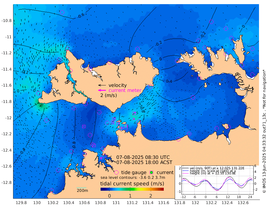 59cm/s 79T +4cm/s rms + 6cm/s 51T. Darwin_C1 52m 51cm/s 93T +4cm/s rms + 7cm/s -161T. Darwin_CW1 22m 27cm/s 67T +4cm/s rms + 8cm/s 61T. Darwin_CW2 34m 47cm/s 39T +3cm/s rms + 9cm/s 98T. Darwin_CW3 22m 38cm/s 90T +5cm/s rms + 7cm/s 88T. Darwin_C3 56m 26cm/s 66T +2cm/s rms + 9cm/s -126T. Darwin_CTbW 22m 9cm/s -76T +1cm/s rms + 1cm/s -47T. DARBGF 30m 12cm/s -49T +4cm/s rms + 3cm/s 80T. NRSDAR 19m -62cm Goodrich Bank 19cm Point Jenny 18cm Native Point 32cm Fish Reef 38cm Tapa Bay -28cm Point Fawcett (Offshore) 45cm Burge Point 30cm Munkunuwa 4cm Beagle A 53cm Parsons Bank 42cm Fenton Patches 59cm Hancox Shoal Area 62cm Nightcliff 68cm Darwin 46cm Charles Point Patches 59cm Glyde Point 66cm Chambers Bay 73cm Point Stuart 61cm Cape Hotham 48cm Christine Reef 80cm West Alligator Head 85cm East Field Island 50cm Two Hills Bay 52cm Camp Point 36cm Medina Inlet South -33cm South Barlow Point -48cm St. Asaph Bay -59cm Cape Van Dieman -52cm Snake Bay -57cm Cache Point -39cm Point Jahleel (Off) -2cm Cape Don -26cm Port Essington -30cm Smith Point - West -26cm NW Peacock Island -37cm North Of Jones Shoal -10cm Peacock Island 12cm Point David -22cm D'urville Point 16cm Copeland Island 5cm One Tree Point