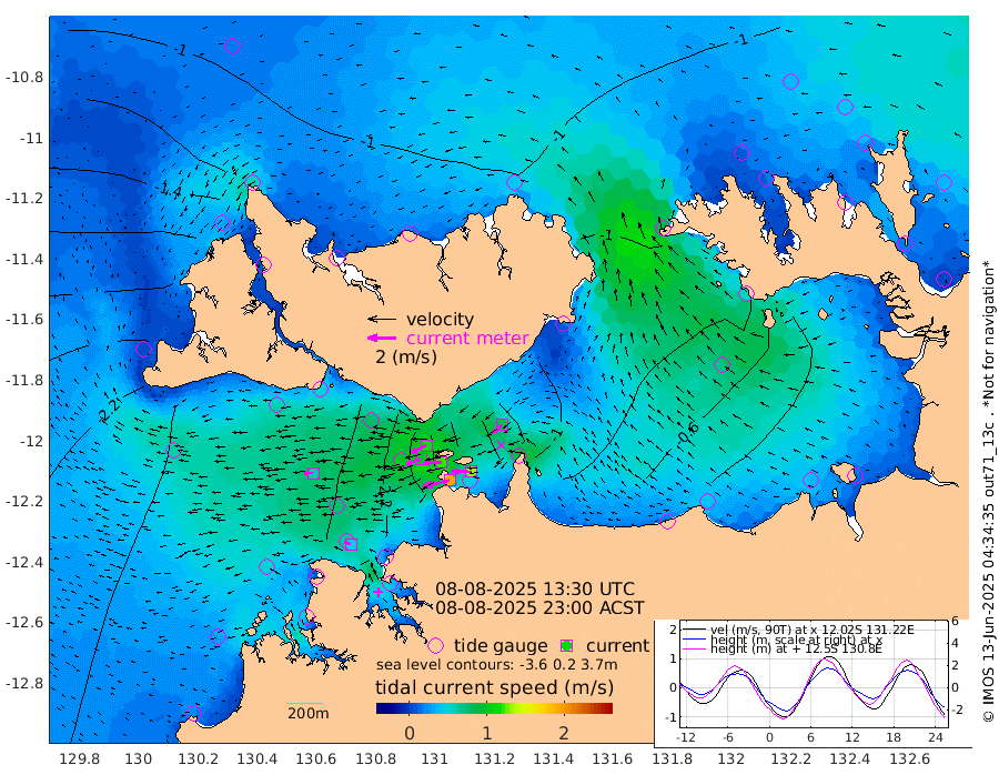 191cm/s -103T +4cm/s rms + 6cm/s 51T. Darwin_C1 52m 132cm/s -89T +4cm/s rms + 7cm/s -161T. Darwin_CW1 22m 99cm/s -108T +4cm/s rms + 8cm/s 61T. Darwin_CW2 34m 84cm/s -130T +3cm/s rms + 9cm/s 98T. Darwin_CW3 22m 124cm/s -90T +5cm/s rms + 7cm/s 88T. Darwin_C3 56m 115cm/s -115T +2cm/s rms + 9cm/s -126T. Darwin_CTbW 22m 60cm/s -93T +1cm/s rms + 1cm/s -47T. DARBGF 30m 49cm/s -64T +4cm/s rms + 3cm/s 80T. NRSDAR 19m -78cm Goodrich Bank -236cm Point Jenny -237cm Native Point -230cm Fish Reef -250cm Tapa Bay -166cm Point Fawcett (Offshore) -252cm Burge Point -224cm Munkunuwa -220cm Beagle A -233cm Parsons Bank -250cm Fenton Patches -230cm Hancox Shoal Area -252cm Nightcliff -253cm Darwin -252cm Charles Point Patches -167cm Glyde Point -94cm Chambers Bay -70cm Point Stuart -125cm Cape Hotham -97cm Christine Reef -64cm West Alligator Head -37cm East Field Island -89cm Two Hills Bay -105cm Camp Point -236cm Medina Inlet South -148cm South Barlow Point -125cm St. Asaph Bay -85cm Cape Van Dieman -89cm Snake Bay -85cm Cache Point -86cm Point Jahleel (Off) -106cm Cape Don -87cm Port Essington -90cm Smith Point - West -83cm NW Peacock Island -73cm North Of Jones Shoal -26cm Peacock Island -83cm Point David -89cm D'urville Point -80cm Copeland Island -82cm One Tree Point