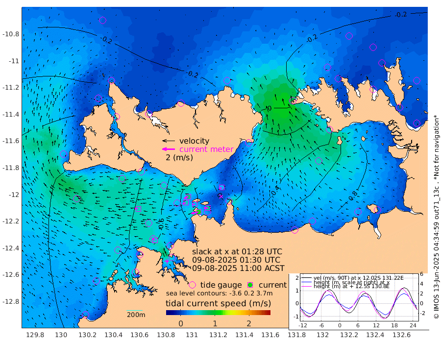 119cm/s -102T +4cm/s rms + 6cm/s 51T. Darwin_C1 52m 66cm/s -88T +4cm/s rms + 7cm/s -161T. Darwin_CW1 22m 56cm/s -111T +4cm/s rms + 8cm/s 61T. Darwin_CW2 34m 38cm/s -120T +3cm/s rms + 9cm/s 98T. Darwin_CW3 22m 38cm/s -94T +5cm/s rms + 7cm/s 88T. Darwin_C3 56m 72cm/s -116T +2cm/s rms + 9cm/s -126T. Darwin_CTbW 22m 54cm/s -87T +1cm/s rms + 1cm/s -47T. DARBGF 30m 51cm/s -59T +4cm/s rms + 3cm/s 80T. NRSDAR 19m 0cm Goodrich Bank -86cm Point Jenny -86cm Native Point -84cm Fish Reef -90cm Tapa Bay -51cm Point Fawcett (Offshore) -88cm Burge Point -101cm Munkunuwa -81cm Beagle A -89cm Parsons Bank -91cm Fenton Patches -77cm Hancox Shoal Area -97cm Nightcliff -76cm Darwin -71cm Charles Point Patches -18cm Glyde Point 47cm Chambers Bay 61cm Point Stuart 2cm Cape Hotham 38cm Christine Reef 72cm West Alligator Head 104cm East Field Island 32cm Two Hills Bay 31cm Camp Point -83cm Medina Inlet South -50cm South Barlow Point -34cm St. Asaph Bay -8cm Cape Van Dieman -10cm Snake Bay -2cm Cache Point -5cm Point Jahleel (Off) -4cm Cape Don -5cm Port Essington -13cm Smith Point - West -8cm NW Peacock Island 0cm North Of Jones Shoal -2cm Peacock Island -13cm Point David -15cm D'urville Point -14cm Copeland Island -6cm One Tree Point
