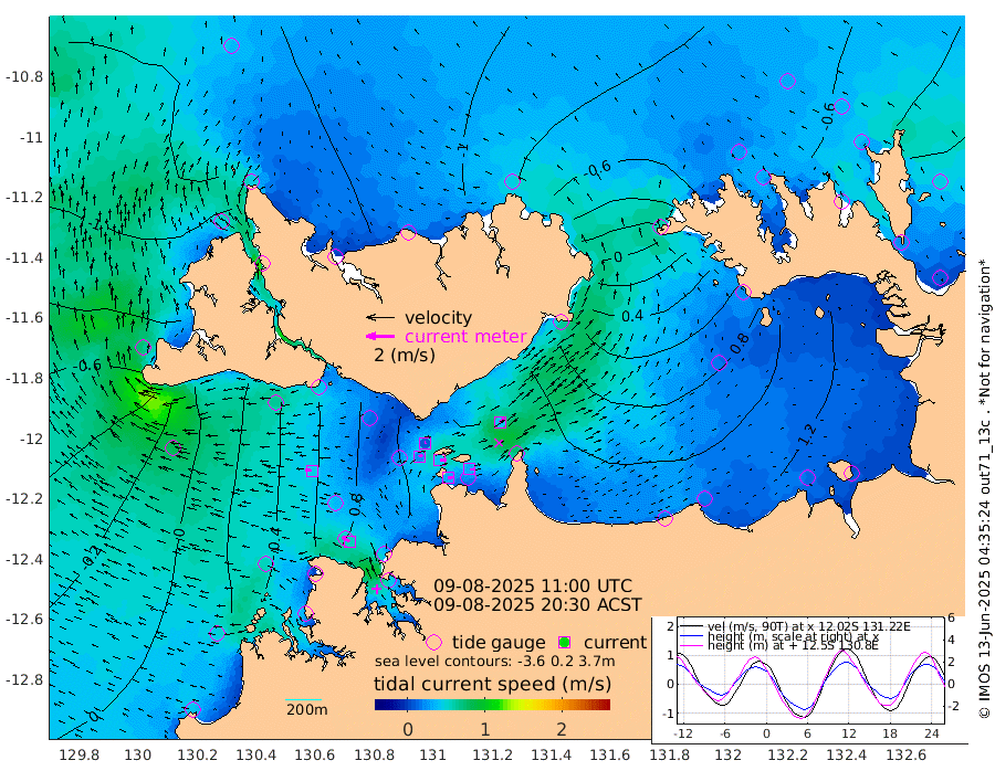 32cm/s 83T +4cm/s rms + 6cm/s 51T. Darwin_C1 52m 32cm/s 91T +4cm/s rms + 7cm/s -161T. Darwin_CW1 22m 25cm/s 62T +4cm/s rms + 8cm/s 61T. Darwin_CW2 34m 42cm/s 41T +3cm/s rms + 9cm/s 98T. Darwin_CW3 22m 42cm/s 89T +5cm/s rms + 7cm/s 88T. Darwin_C3 56m 9cm/s 66T +2cm/s rms + 9cm/s -126T. Darwin_CTbW 22m 45cm/s -83T +1cm/s rms + 1cm/s -47T. DARBGF 30m 58cm/s -54T +4cm/s rms + 3cm/s 80T. NRSDAR 19m -105cm Goodrich Bank -24cm Point Jenny -25cm Native Point -7cm Fish Reef 6cm Tapa Bay -83cm Point Fawcett (Offshore) 15cm Burge Point -5cm Munkunuwa -46cm Beagle A 34cm Parsons Bank 11cm Fenton Patches 49cm Hancox Shoal Area 40cm Nightcliff 56cm Darwin 22cm Charles Point Patches 70cm Glyde Point 116cm Chambers Bay 129cm Point Stuart 83cm Cape Hotham 89cm Christine Reef 147cm West Alligator Head 168cm East Field Island 80cm Two Hills Bay 79cm Camp Point 4cm Medina Inlet South -86cm South Barlow Point -101cm St. Asaph Bay -107cm Cape Van Dieman -99cm Snake Bay -101cm Cache Point -72cm Point Jahleel (Off) -20cm Cape Don -58cm Port Essington -63cm Smith Point - West -56cm NW Peacock Island -72cm North Of Jones Shoal -22cm Peacock Island -8cm Point David -53cm D'urville Point 0cm Copeland Island -17cm One Tree Point