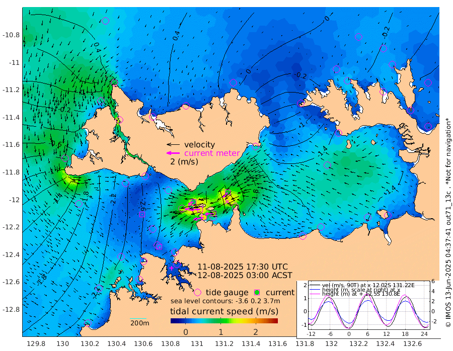 165cm/s -101T +4cm/s rms + 6cm/s 51T. Darwin_C1 52m 129cm/s -91T +4cm/s rms + 7cm/s -161T. Darwin_CW1 22m 92cm/s -106T +4cm/s rms + 8cm/s 61T. Darwin_CW2 34m 101cm/s -136T +3cm/s rms + 9cm/s 98T. Darwin_CW3 22m 161cm/s -90T +5cm/s rms + 7cm/s 88T. Darwin_C3 56m 85cm/s -116T +2cm/s rms + 9cm/s -126T. Darwin_CTbW 22m 13cm/s 141T +1cm/s rms + 1cm/s -47T. DARBGF 30m 23cm/s 154T +4cm/s rms + 3cm/s 80T. NRSDAR 19m 39cm Goodrich Bank -172cm Point Jenny -170cm Native Point -180cm Fish Reef -209cm Tapa Bay -49cm Point Fawcett (Offshore) -231cm Burge Point -183cm Munkunuwa -127cm Beagle A -233cm Parsons Bank -213cm Fenton Patches -242cm Hancox Shoal Area -243cm Nightcliff -270cm Darwin -234cm Charles Point Patches -216cm Glyde Point -214cm Chambers Bay -207cm Point Stuart -192cm Cape Hotham -194cm Christine Reef -224cm West Alligator Head -224cm East Field Island -169cm Two Hills Bay -177cm Camp Point -202cm Medina Inlet South -35cm South Barlow Point 1cm St. Asaph Bay 38cm Cape Van Dieman 28cm Snake Bay 31cm Cache Point 1cm Point Jahleel (Off) -76cm Cape Don -17cm Port Essington -12cm Smith Point - West -13cm NW Peacock Island 12cm North Of Jones Shoal 1cm Peacock Island -55cm Point David -20cm D'urville Point -59cm Copeland Island -49cm One Tree Point