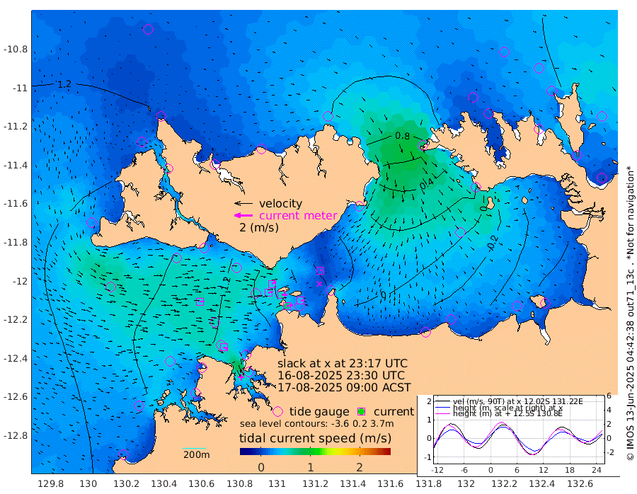 68cm/s 79T +4cm/s rms + 6cm/s 51T. Darwin_C1 52m 38cm/s 84T +4cm/s rms + 7cm/s -161T. Darwin_CW1 22m 47cm/s 75T +4cm/s rms + 8cm/s 61T. Darwin_CW2 34m 14cm/s 63T +3cm/s rms + 9cm/s 98T. Darwin_CW3 22m 58cm/s 88T +5cm/s rms + 7cm/s 88T. Darwin_C3 56m 46cm/s 62T +2cm/s rms + 9cm/s -126T. Darwin_CTbW 22m 48cm/s 90T +1cm/s rms + 1cm/s -47T. DARBGF 30m 45cm/s 120T +4cm/s rms + 3cm/s 80T. NRSDAR 19m 91cm Goodrich Bank 117cm Point Jenny 120cm Native Point 128cm Fish Reef 125cm Tapa Bay 120cm Point Fawcett (Offshore) 126cm Burge Point 128cm Munkunuwa 123cm Beagle A 126cm Parsons Bank 122cm Fenton Patches 107cm Hancox Shoal Area 112cm Nightcliff 132cm Darwin 141cm Charles Point Patches 61cm Glyde Point -15cm Chambers Bay -30cm Point Stuart 34cm Cape Hotham -15cm Christine Reef -45cm West Alligator Head -74cm East Field Island 11cm Two Hills Bay 13cm Camp Point 133cm Medina Inlet South 126cm South Barlow Point 109cm St. Asaph Bay 95cm Cape Van Dieman 104cm Snake Bay 90cm Cache Point 82cm Point Jahleel (Off) 70cm Cape Don 89cm Port Essington 88cm Smith Point - West 86cm NW Peacock Island 84cm North Of Jones Shoal 30cm Peacock Island 76cm Point David 90cm D'urville Point 71cm Copeland Island 79cm One Tree Point