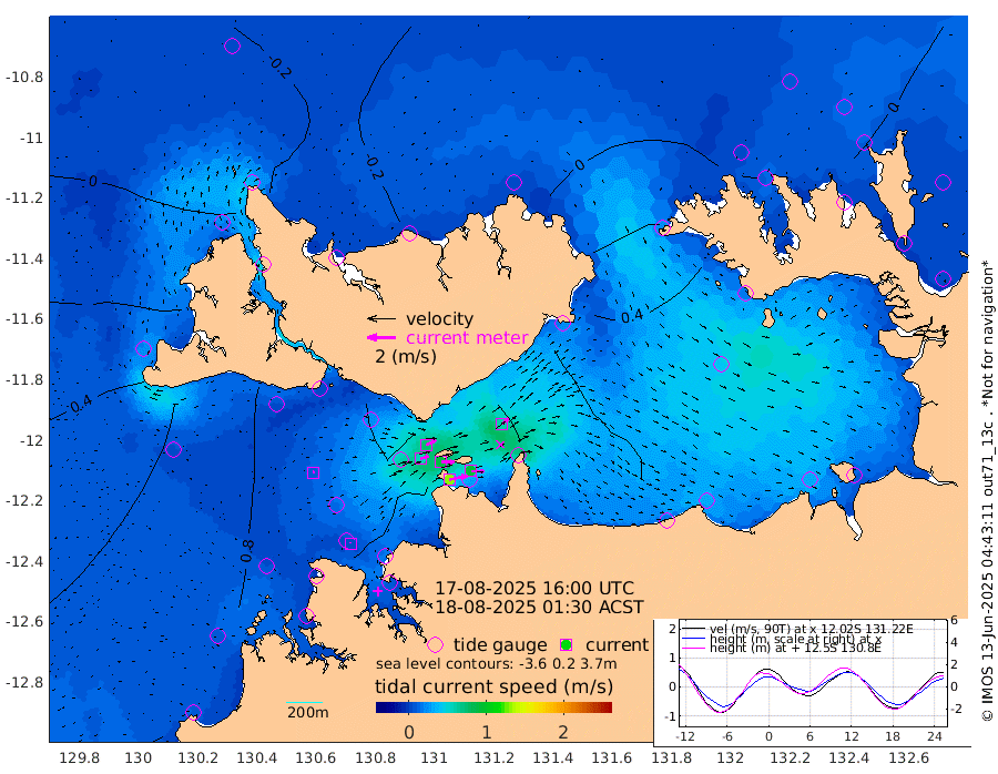 130cm/s 78T +4cm/s rms + 6cm/s 51T. Darwin_C1 52m 93cm/s 91T +4cm/s rms + 7cm/s -161T. Darwin_CW1 22m 57cm/s 72T +4cm/s rms + 8cm/s 61T. Darwin_CW2 34m 62cm/s 50T +3cm/s rms + 9cm/s 98T. Darwin_CW3 22m 89cm/s 89T +5cm/s rms + 7cm/s 88T. Darwin_C3 56m 77cm/s 65T +2cm/s rms + 9cm/s -126T. Darwin_CTbW 22m 9cm/s 58T +1cm/s rms + 1cm/s -47T. DARBGF 30m 6cm/s 3T +4cm/s rms + 3cm/s 80T. NRSDAR 19m -16cm Goodrich Bank 100cm Point Jenny 95cm Native Point 99cm Fish Reef 106cm Tapa Bay 44cm Point Fawcett (Offshore) 112cm Burge Point 94cm Munkunuwa 77cm Beagle A 109cm Parsons Bank 106cm Fenton Patches 114cm Hancox Shoal Area 121cm Nightcliff 115cm Darwin 99cm Charles Point Patches 103cm Glyde Point 113cm Chambers Bay 114cm Point Stuart 99cm Cape Hotham 112cm Christine Reef 128cm West Alligator Head 125cm East Field Island 95cm Two Hills Bay 81cm Camp Point 97cm Medina Inlet South 20cm South Barlow Point 12cm St. Asaph Bay -14cm Cape Van Dieman -17cm Snake Bay -4cm Cache Point 8cm Point Jahleel (Off) 42cm Cape Don 6cm Port Essington 12cm Smith Point - West 7cm NW Peacock Island -1cm North Of Jones Shoal 0cm Peacock Island 13cm Point David 9cm D'urville Point 16cm Copeland Island 14cm One Tree Point