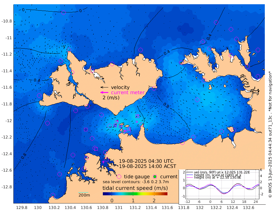 73cm/s 78T +4cm/s rms + 6cm/s 51T. Darwin_C1 52m 32cm/s 83T +4cm/s rms + 7cm/s -161T. Darwin_CW1 22m 19cm/s 75T +4cm/s rms + 8cm/s 61T. Darwin_CW2 34m 35cm/s 46T +3cm/s rms + 9cm/s 98T. Darwin_CW3 22m 24cm/s 91T +5cm/s rms + 7cm/s 88T. Darwin_C3 56m 47cm/s 63T +2cm/s rms + 9cm/s -126T. Darwin_CTbW 22m 1cm/s 25T +1cm/s rms + 1cm/s -47T. DARBGF 30m 4cm/s -17T +4cm/s rms + 3cm/s 80T. NRSDAR 19m -11cm Goodrich Bank 52cm Point Jenny 50cm Native Point 61cm Fish Reef 58cm Tapa Bay 17cm Point Fawcett (Offshore) 66cm Burge Point 44cm Munkunuwa 42cm Beagle A 75cm Parsons Bank 65cm Fenton Patches 72cm Hancox Shoal Area 65cm Nightcliff 77cm Darwin 64cm Charles Point Patches 76cm Glyde Point 75cm Chambers Bay 88cm Point Stuart 76cm Cape Hotham 68cm Christine Reef 92cm West Alligator Head 91cm East Field Island 76cm Two Hills Bay 63cm Camp Point 55cm Medina Inlet South 11cm South Barlow Point -5cm St. Asaph Bay -7cm Cape Van Dieman -2cm Snake Bay 0cm Cache Point 11cm Point Jahleel (Off) 44cm Cape Don 28cm Port Essington 28cm Smith Point - West 32cm NW Peacock Island 11cm North Of Jones Shoal 7cm Peacock Island 61cm Point David 38cm D'urville Point 64cm Copeland Island 54cm One Tree Point