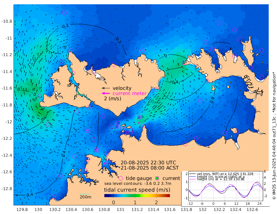 2cm/s -111T +4cm/s rms + 6cm/s 51T. Darwin_C1 52m 41cm/s 88T +4cm/s rms + 7cm/s -161T. Darwin_CW1 22m 15cm/s 78T +4cm/s rms + 8cm/s 61T. Darwin_CW2 34m 26cm/s 31T +3cm/s rms + 9cm/s 98T. Darwin_CW3 22m 52cm/s 92T +5cm/s rms + 7cm/s 88T. Darwin_C3 56m 11cm/s -122T +2cm/s rms + 9cm/s -126T. Darwin_CTbW 22m 28cm/s -78T +1cm/s rms + 1cm/s -47T. DARBGF 30m 34cm/s -51T +4cm/s rms + 3cm/s 80T. NRSDAR 19m -1cm Goodrich Bank 49cm Point Jenny 49cm Native Point 48cm Fish Reef 61cm Tapa Bay 13cm Point Fawcett (Offshore) 79cm Burge Point 45cm Munkunuwa 41cm Beagle A 61cm Parsons Bank 69cm Fenton Patches 73cm Hancox Shoal Area 76cm Nightcliff 86cm Darwin 76cm Charles Point Patches 86cm Glyde Point 111cm Chambers Bay 108cm Point Stuart 82cm Cape Hotham 104cm Christine Reef 121cm West Alligator Head 140cm East Field Island 78cm Two Hills Bay 95cm Camp Point 59cm Medina Inlet South 5cm South Barlow Point 3cm St. Asaph Bay -6cm Cape Van Dieman -5cm Snake Bay -2cm Cache Point 5cm Point Jahleel (Off) 25cm Cape Don -2cm Port Essington -8cm Smith Point - West -7cm NW Peacock Island -5cm North Of Jones Shoal -3cm Peacock Island -5cm Point David -12cm D'urville Point -6cm Copeland Island -2cm One Tree Point