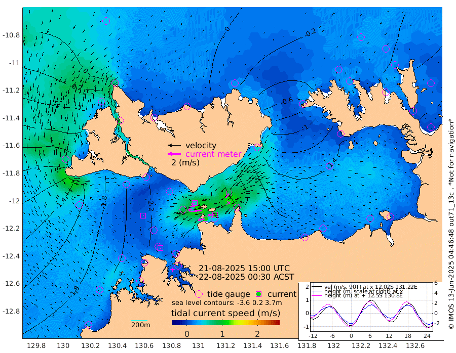 115cm/s -101T +4cm/s rms + 6cm/s 51T. Darwin_C1 52m 111cm/s -92T +4cm/s rms + 7cm/s -161T. Darwin_CW1 22m 59cm/s -106T +4cm/s rms + 8cm/s 61T. Darwin_CW2 34m 82cm/s -139T +3cm/s rms + 9cm/s 98T. Darwin_CW3 22m 107cm/s -90T +5cm/s rms + 7cm/s 88T. Darwin_C3 56m 55cm/s -116T +2cm/s rms + 9cm/s -126T. Darwin_CTbW 22m 10cm/s 139T +1cm/s rms + 1cm/s -47T. DARBGF 30m 16cm/s 145T +4cm/s rms + 3cm/s 80T. NRSDAR 19m 10cm Goodrich Bank -158cm Point Jenny -156cm Native Point -171cm Fish Reef -183cm Tapa Bay -66cm Point Fawcett (Offshore) -211cm Burge Point -157cm Munkunuwa -132cm Beagle A -197cm Parsons Bank -195cm Fenton Patches -201cm Hancox Shoal Area -204cm Nightcliff -229cm Darwin -205cm Charles Point Patches -192cm Glyde Point -187cm Chambers Bay -189cm Point Stuart -177cm Cape Hotham -169cm Christine Reef -202cm West Alligator Head -207cm East Field Island -154cm Two Hills Bay -164cm Camp Point -177cm Medina Inlet South -46cm South Barlow Point -21cm St. Asaph Bay 8cm Cape Van Dieman 3cm Snake Bay -1cm Cache Point -20cm Point Jahleel (Off) -79cm Cape Don -33cm Port Essington -25cm Smith Point - West -27cm NW Peacock Island -10cm North Of Jones Shoal -6cm Peacock Island -60cm Point David -31cm D'urville Point -63cm Copeland Island -57cm One Tree Point