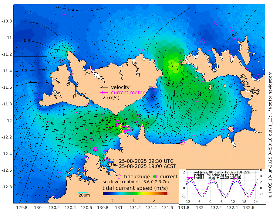 184cm/s 78T +4cm/s rms + 6cm/s 51T. Darwin_C1 52m 140cm/s 91T +4cm/s rms + 7cm/s -161T. Darwin_CW1 22m 112cm/s 74T +4cm/s rms + 8cm/s 61T. Darwin_CW2 34m 92cm/s 46T +3cm/s rms + 9cm/s 98T. Darwin_CW3 22m 164cm/s 89T +5cm/s rms + 7cm/s 88T. Darwin_C3 56m 88cm/s 66T +2cm/s rms + 9cm/s -126T. Darwin_CTbW 22m 64cm/s 87T +1cm/s rms + 1cm/s -47T. DARBGF 30m 61cm/s 115T +4cm/s rms + 3cm/s 80T. NRSDAR 19m 25cm Goodrich Bank 205cm Point Jenny 204cm Native Point 223cm Fish Reef 233cm Tapa Bay 135cm Point Fawcett (Offshore) 236cm Burge Point 231cm Munkunuwa 175cm Beagle A 241cm Parsons Bank 221cm Fenton Patches 228cm Hancox Shoal Area 241cm Nightcliff 258cm Darwin 245cm Charles Point Patches 153cm Glyde Point 73cm Chambers Bay 56cm Point Stuart 119cm Cape Hotham 56cm Christine Reef 50cm West Alligator Head 10cm East Field Island 76cm Two Hills Bay 74cm Camp Point 233cm Medina Inlet South 117cm South Barlow Point 83cm St. Asaph Bay 35cm Cape Van Dieman 44cm Snake Bay 34cm Cache Point 46cm Point Jahleel (Off) 80cm Cape Don 62cm Port Essington 60cm Smith Point - West 54cm NW Peacock Island 45cm North Of Jones Shoal 19cm Peacock Island 77cm Point David 64cm D'urville Point 78cm Copeland Island 75cm One Tree Point
