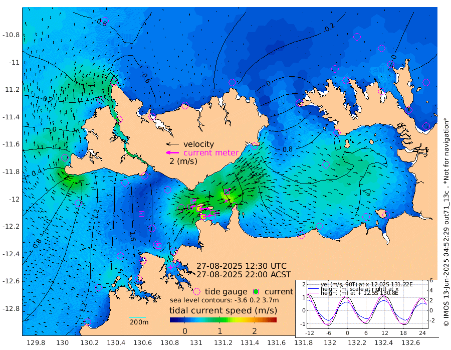 139cm/s 80T +4cm/s rms + 6cm/s 51T. Darwin_C1 52m 108cm/s 93T +4cm/s rms + 7cm/s -161T. Darwin_CW1 22m 88cm/s 71T +4cm/s rms + 8cm/s 61T. Darwin_CW2 34m 80cm/s 47T +3cm/s rms + 9cm/s 98T. Darwin_CW3 22m 151cm/s 89T +5cm/s rms + 7cm/s 88T. Darwin_C3 56m 65cm/s 66T +2cm/s rms + 9cm/s -126T. Darwin_CTbW 22m 13cm/s -49T +1cm/s rms + 1cm/s -47T. DARBGF 30m 31cm/s -43T +4cm/s rms + 3cm/s 80T. NRSDAR 19m -53cm Goodrich Bank 100cm Point Jenny 96cm Native Point 121cm Fish Reef 132cm Tapa Bay 24cm Point Fawcett (Offshore) 142cm Burge Point 122cm Munkunuwa 63cm Beagle A 158cm Parsons Bank 127cm Fenton Patches 164cm Hancox Shoal Area 161cm Nightcliff 184cm Darwin 151cm Charles Point Patches 154cm Glyde Point 166cm Chambers Bay 174cm Point Stuart 152cm Cape Hotham 140cm Christine Reef 193cm West Alligator Head 192cm East Field Island 140cm Two Hills Bay 123cm Camp Point 133cm Medina Inlet South 3cm South Barlow Point -21cm St. Asaph Bay -52cm Cape Van Dieman -43cm Snake Bay -42cm Cache Point -14cm Point Jahleel (Off) 47cm Cape Don -1cm Port Essington -3cm Smith Point - West -3cm NW Peacock Island -17cm North Of Jones Shoal -3cm Peacock Island 33cm Point David 2cm D'urville Point 39cm Copeland Island 31cm One Tree Point