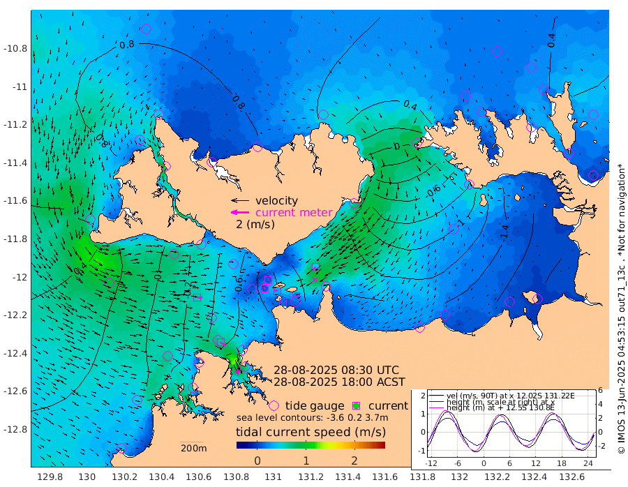 15cm/s -101T +4cm/s rms + 6cm/s 51T. Darwin_C1 52m 20cm/s -88T +4cm/s rms + 7cm/s -161T. Darwin_CW1 22m 7cm/s 62T +4cm/s rms + 8cm/s 61T. Darwin_CW2 34m 49cm/s -144T +3cm/s rms + 9cm/s 98T. Darwin_CW3 22m 34cm/s -86T +5cm/s rms + 7cm/s 88T. Darwin_C3 56m 9cm/s 55T +2cm/s rms + 9cm/s -126T. Darwin_CTbW 22m 60cm/s 96T +1cm/s rms + 1cm/s -47T. DARBGF 30m 68cm/s 126T +4cm/s rms + 3cm/s 80T. NRSDAR 19m 63cm Goodrich Bank 27cm Point Jenny 33cm Native Point 9cm Fish Reef 20cm Tapa Bay 58cm Point Fawcett (Offshore) -3cm Burge Point 37cm Munkunuwa 35cm Beagle A -6cm Parsons Bank 2cm Fenton Patches -19cm Hancox Shoal Area -10cm Nightcliff -26cm Darwin 1cm Charles Point Patches -81cm Glyde Point -157cm Chambers Bay -186cm Point Stuart -106cm Cape Hotham -140cm Christine Reef -212cm West Alligator Head -249cm East Field Island -129cm Two Hills Bay -109cm Camp Point 14cm Medina Inlet South 70cm South Barlow Point 73cm St. Asaph Bay 69cm Cape Van Dieman 65cm Snake Bay 52cm Cache Point 32cm Point Jahleel (Off) -16cm Cape Don 26cm Port Essington 29cm Smith Point - West 24cm NW Peacock Island 32cm North Of Jones Shoal 10cm Peacock Island 1cm Point David 26cm D'urville Point -4cm Copeland Island -3cm One Tree Point
