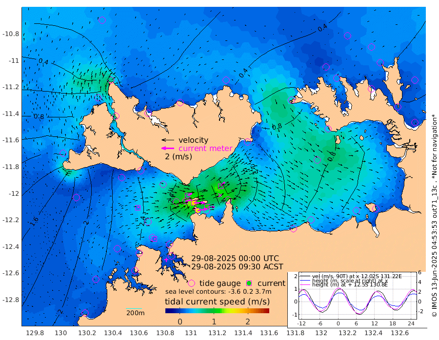 160cm/s 78T +4cm/s rms + 6cm/s 51T. Darwin_C1 52m 119cm/s 91T +4cm/s rms + 7cm/s -161T. Darwin_CW1 22m 102cm/s 74T +4cm/s rms + 8cm/s 61T. Darwin_CW2 34m 94cm/s 44T +3cm/s rms + 9cm/s 98T. Darwin_CW3 22m 168cm/s 89T +5cm/s rms + 7cm/s 88T. Darwin_C3 56m 80cm/s 66T +2cm/s rms + 9cm/s -126T. Darwin_CTbW 22m 24cm/s 74T +1cm/s rms + 1cm/s -47T. DARBGF 30m 19cm/s 89T +4cm/s rms + 3cm/s 80T. NRSDAR 19m 1cm Goodrich Bank 157cm Point Jenny 156cm Native Point 175cm Fish Reef 184cm Tapa Bay 78cm Point Fawcett (Offshore) 202cm Burge Point 177cm Munkunuwa 133cm Beagle A 209cm Parsons Bank 191cm Fenton Patches 202cm Hancox Shoal Area 213cm Nightcliff 234cm Darwin 207cm Charles Point Patches 165cm Glyde Point 125cm Chambers Bay 116cm Point Stuart 138cm Cape Hotham 112cm Christine Reef 122cm West Alligator Head 106cm East Field Island 113cm Two Hills Bay 110cm Camp Point 191cm Medina Inlet South 76cm South Barlow Point 39cm St. Asaph Bay 4cm Cape Van Dieman 20cm Snake Bay 7cm Cache Point 27cm Point Jahleel (Off) 75cm Cape Don 42cm Port Essington 41cm Smith Point - West 39cm NW Peacock Island 25cm North Of Jones Shoal 11cm Peacock Island 61cm Point David 47cm D'urville Point 63cm Copeland Island 63cm One Tree Point