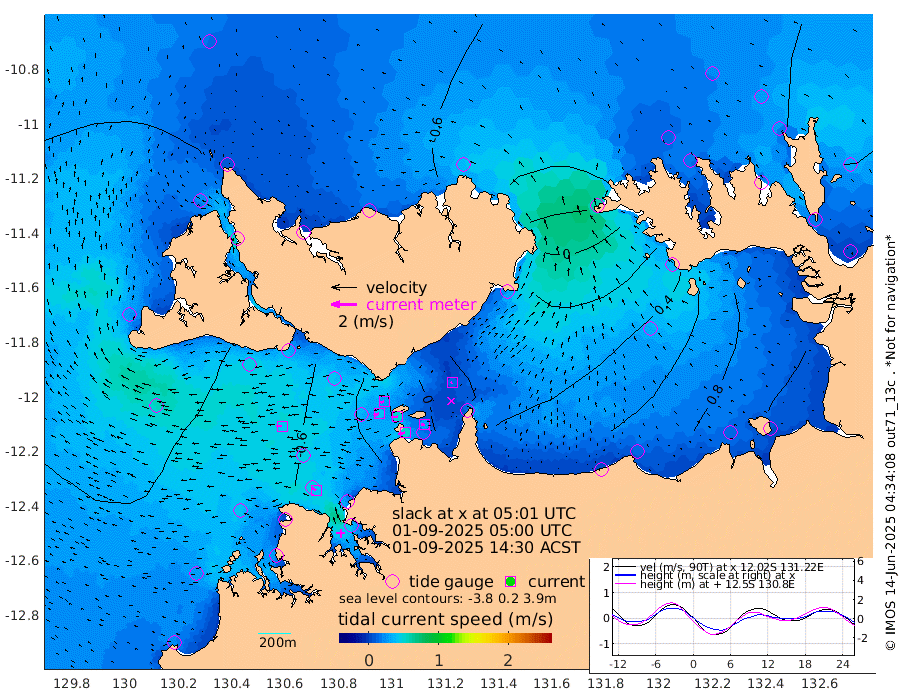 53cm/s -102T +4cm/s rms + 6cm/s 51T. Darwin_C1 52m 29cm/s -85T +4cm/s rms + 7cm/s -161T. Darwin_CW1 22m 43cm/s -107T +4cm/s rms + 8cm/s 61T. Darwin_CW2 34m 12cm/s -108T +3cm/s rms + 9cm/s 98T. Darwin_CW3 22m 51cm/s -93T +5cm/s rms + 7cm/s 88T. Darwin_C3 56m 29cm/s -116T +2cm/s rms + 9cm/s -126T. Darwin_CTbW 22m 41cm/s -90T +1cm/s rms + 1cm/s -47T. DARBGF 30m 40cm/s -59T +4cm/s rms + 3cm/s 80T. NRSDAR 19m -73cm Goodrich Bank -104cm Point Jenny -107cm Native Point -96cm Fish Reef -108cm Tapa Bay -96cm Point Fawcett (Offshore) -104cm Burge Point -114cm Munkunuwa -104cm Beagle A -96cm Parsons Bank -101cm Fenton Patches -86cm Hancox Shoal Area -92cm Nightcliff -94cm Darwin -106cm Charles Point Patches -32cm Glyde Point 34cm Chambers Bay 55cm Point Stuart -4cm Cape Hotham 20cm Christine Reef 66cm West Alligator Head 93cm East Field Island 20cm Two Hills Bay 9cm Camp Point -104cm Medina Inlet South -99cm South Barlow Point -93cm St. Asaph Bay -75cm Cape Van Dieman -74cm Snake Bay -67cm Cache Point -58cm Point Jahleel (Off) -35cm Cape Don -49cm Port Essington -53cm Smith Point - West -47cm NW Peacock Island -47cm North Of Jones Shoal -15cm Peacock Island -23cm Point David -47cm D'urville Point -18cm Copeland Island -23cm One Tree Point