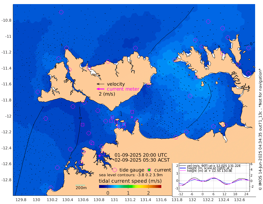 25cm/s -103T +4cm/s rms + 6cm/s 51T. Darwin_C1 52m 22cm/s 89T +4cm/s rms + 7cm/s -161T. Darwin_CW1 22m 8cm/s -113T +4cm/s rms + 8cm/s 61T. Darwin_CW2 34m 5cm/s -84T +3cm/s rms + 9cm/s 98T. Darwin_CW3 22m 2cm/s 108T +5cm/s rms + 7cm/s 88T. Darwin_C3 56m 20cm/s -116T +2cm/s rms + 9cm/s -126T. Darwin_CTbW 22m 2cm/s 79T +1cm/s rms + 1cm/s -47T. DARBGF 30m 3cm/s -173T +4cm/s rms + 3cm/s 80T. NRSDAR 19m 42cm Goodrich Bank 35cm Point Jenny 35cm Native Point 40cm Fish Reef 33cm Tapa Bay 49cm Point Fawcett (Offshore) 34cm Burge Point 22cm Munkunuwa 46cm Beagle A 12cm Parsons Bank 36cm Fenton Patches 15cm Hancox Shoal Area 19cm Nightcliff 26cm Darwin 38cm Charles Point Patches 26cm Glyde Point 22cm Chambers Bay 22cm Point Stuart 23cm Cape Hotham 17cm Christine Reef 22cm West Alligator Head 29cm East Field Island 19cm Two Hills Bay 28cm Camp Point 31cm Medina Inlet South 35cm South Barlow Point 44cm St. Asaph Bay 40cm Cape Van Dieman 36cm Snake Bay 43cm Cache Point 34cm Point Jahleel (Off) 22cm Cape Don 24cm Port Essington 20cm Smith Point - West 17cm NW Peacock Island 27cm North Of Jones Shoal 8cm Peacock Island 1cm Point David 13cm D'urville Point -2cm Copeland Island 6cm One Tree Point