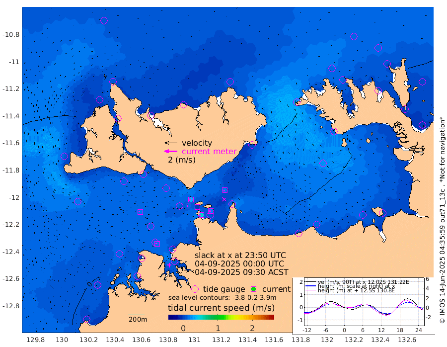 51cm/s -103T +4cm/s rms + 6cm/s 51T. Darwin_C1 52m 24cm/s -86T +4cm/s rms + 7cm/s -161T. Darwin_CW1 22m 16cm/s -115T +4cm/s rms + 8cm/s 61T. Darwin_CW2 34m 18cm/s -127T +3cm/s rms + 9cm/s 98T. Darwin_CW3 22m 1cm/s 101T +5cm/s rms + 7cm/s 88T. Darwin_C3 56m 37cm/s -115T +2cm/s rms + 9cm/s -126T. Darwin_CTbW 22m 19cm/s -84T +1cm/s rms + 1cm/s -47T. DARBGF 30m 20cm/s -59T +4cm/s rms + 3cm/s 80T. NRSDAR 19m 38cm Goodrich Bank -8cm Point Jenny -6cm Native Point -6cm Fish Reef -6cm Tapa Bay 13cm Point Fawcett (Offshore) -4cm Burge Point -9cm Munkunuwa -5cm Beagle A -3cm Parsons Bank -11cm Fenton Patches -5cm Hancox Shoal Area -21cm Nightcliff 3cm Darwin 10cm Charles Point Patches 9cm Glyde Point 10cm Chambers Bay 16cm Point Stuart 10cm Cape Hotham 8cm Christine Reef 15cm West Alligator Head 20cm East Field Island 15cm Two Hills Bay 19cm Camp Point -1cm Medina Inlet South 18cm South Barlow Point 21cm St. Asaph Bay 35cm Cape Van Dieman 37cm Snake Bay 35cm Cache Point 30cm Point Jahleel (Off) 21cm Cape Don 32cm Port Essington 26cm Smith Point - West 30cm NW Peacock Island 29cm North Of Jones Shoal 10cm Peacock Island 28cm Point David 27cm D'urville Point 24cm Copeland Island 28cm One Tree Point