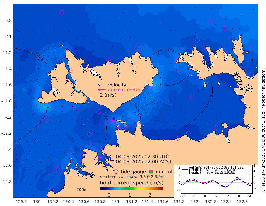 13cm/s -99T +4cm/s rms + 6cm/s 51T. Darwin_C1 52m 42cm/s -91T +4cm/s rms + 7cm/s -161T. Darwin_CW1 22m 18cm/s -109T +4cm/s rms + 8cm/s 61T. Darwin_CW2 34m 16cm/s -140T +3cm/s rms + 9cm/s 98T. Darwin_CW3 22m 28cm/s -93T +5cm/s rms + 7cm/s 88T. Darwin_C3 56m 1cm/s -61T +2cm/s rms + 9cm/s -126T. Darwin_CTbW 22m 2cm/s -149T +1cm/s rms + 1cm/s -47T. DARBGF 30m 2cm/s -98T +4cm/s rms + 3cm/s 80T. NRSDAR 19m 37cm Goodrich Bank -12cm Point Jenny -10cm Native Point -23cm Fish Reef -15cm Tapa Bay 9cm Point Fawcett (Offshore) -26cm Burge Point -22cm Munkunuwa -12cm Beagle A -15cm Parsons Bank -27cm Fenton Patches -16cm Hancox Shoal Area -29cm Nightcliff -25cm Darwin -18cm Charles Point Patches -16cm Glyde Point -20cm Chambers Bay -17cm Point Stuart -12cm Cape Hotham -13cm Christine Reef -23cm West Alligator Head -27cm East Field Island -4cm Two Hills Bay -7cm Camp Point -21cm Medina Inlet South 18cm South Barlow Point 20cm St. Asaph Bay 38cm Cape Van Dieman 41cm Snake Bay 37cm Cache Point 32cm Point Jahleel (Off) 21cm Cape Don 37cm Port Essington 38cm Smith Point - West 43cm NW Peacock Island 36cm North Of Jones Shoal 13cm Peacock Island 51cm Point David 43cm D'urville Point 49cm Copeland Island 45cm One Tree Point