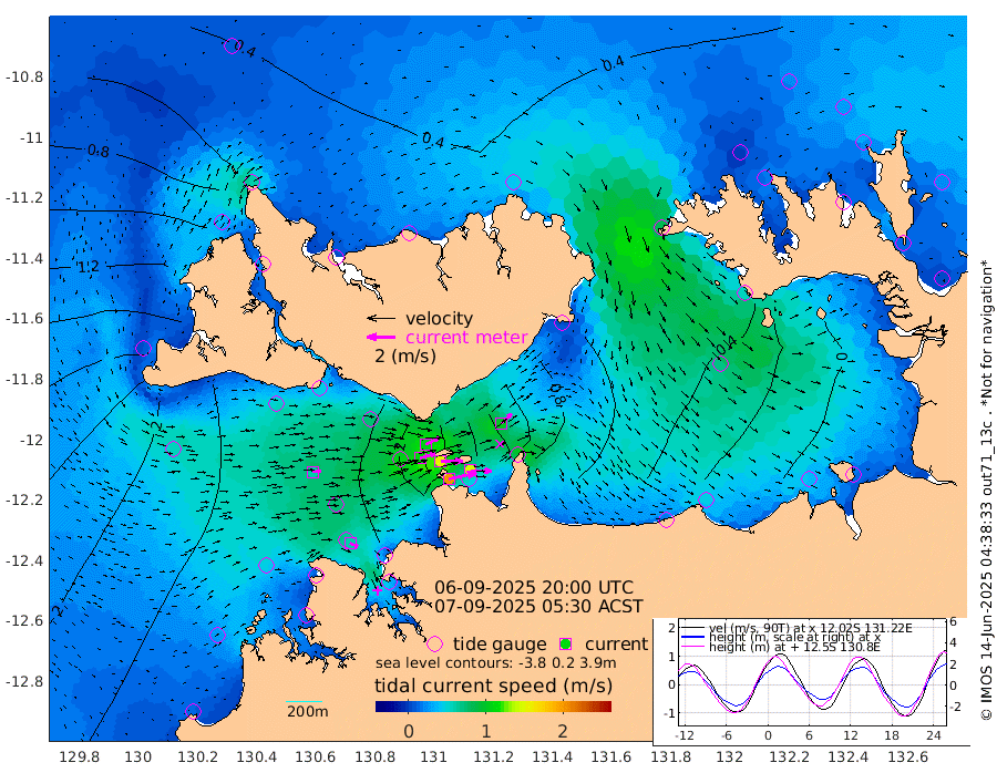 200cm/s 77T +4cm/s rms + 6cm/s 51T. Darwin_C1 52m 147cm/s 91T +4cm/s rms + 7cm/s -161T. Darwin_CW1 22m 111cm/s 73T +4cm/s rms + 8cm/s 61T. Darwin_CW2 34m 102cm/s 47T +3cm/s rms + 9cm/s 98T. Darwin_CW3 22m 154cm/s 89T +5cm/s rms + 7cm/s 88T. Darwin_C3 56m 106cm/s 65T +2cm/s rms + 9cm/s -126T. Darwin_CTbW 22m 61cm/s 86T +1cm/s rms + 1cm/s -47T. DARBGF 30m 60cm/s 114T +4cm/s rms + 3cm/s 80T. NRSDAR 19m 31cm Goodrich Bank 228cm Point Jenny 228cm Native Point 231cm Fish Reef 244cm Tapa Bay 137cm Point Fawcett (Offshore) 261cm Burge Point 238cm Munkunuwa 211cm Beagle A 240cm Parsons Bank 256cm Fenton Patches 229cm Hancox Shoal Area 263cm Nightcliff 257cm Darwin 242cm Charles Point Patches 162cm Glyde Point 89cm Chambers Bay 63cm Point Stuart 118cm Cape Hotham 89cm Christine Reef 62cm West Alligator Head 32cm East Field Island 76cm Two Hills Bay 87cm Camp Point 239cm Medina Inlet South 122cm South Barlow Point 91cm St. Asaph Bay 38cm Cape Van Dieman 41cm Snake Bay 36cm Cache Point 45cm Point Jahleel (Off) 73cm Cape Don 41cm Port Essington 45cm Smith Point - West 34cm NW Peacock Island 27cm North Of Jones Shoal 10cm Peacock Island 30cm Point David 40cm D'urville Point 29cm Copeland Island 32cm One Tree Point