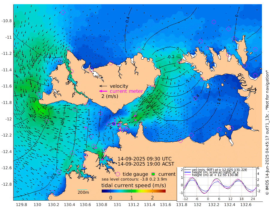 68cm/s -102T +4cm/s rms + 6cm/s 51T. Darwin_C1 52m 58cm/s -92T +4cm/s rms + 7cm/s -161T. Darwin_CW1 22m 4cm/s -84T +4cm/s rms + 8cm/s 61T. Darwin_CW2 34m 69cm/s -141T +3cm/s rms + 9cm/s 98T. Darwin_CW3 22m 40cm/s -86T +5cm/s rms + 7cm/s 88T. Darwin_C3 56m 34cm/s -116T +2cm/s rms + 9cm/s -126T. Darwin_CTbW 22m 50cm/s 97T +1cm/s rms + 1cm/s -47T. DARBGF 30m 59cm/s 127T +4cm/s rms + 3cm/s 80T. NRSDAR 19m 38cm Goodrich Bank -39cm Point Jenny -35cm Native Point -42cm Fish Reef -49cm Tapa Bay 20cm Point Fawcett (Offshore) -66cm Burge Point -11cm Munkunuwa -24cm Beagle A -63cm Parsons Bank -66cm Fenton Patches -84cm Hancox Shoal Area -76cm Nightcliff -85cm Darwin -62cm Charles Point Patches -128cm Glyde Point -193cm Chambers Bay -212cm Point Stuart -142cm Cape Hotham -182cm Christine Reef -236cm West Alligator Head -268cm East Field Island -156cm Two Hills Bay -149cm Camp Point -38cm Medina Inlet South 35cm South Barlow Point 42cm St. Asaph Bay 42cm Cape Van Dieman 39cm Snake Bay 25cm Cache Point 5cm Point Jahleel (Off) -50cm Cape Don -4cm Port Essington -3cm Smith Point - West -9cm NW Peacock Island 10cm North Of Jones Shoal 1cm Peacock Island -41cm Point David -10cm D'urville Point -46cm Copeland Island -37cm One Tree Point
