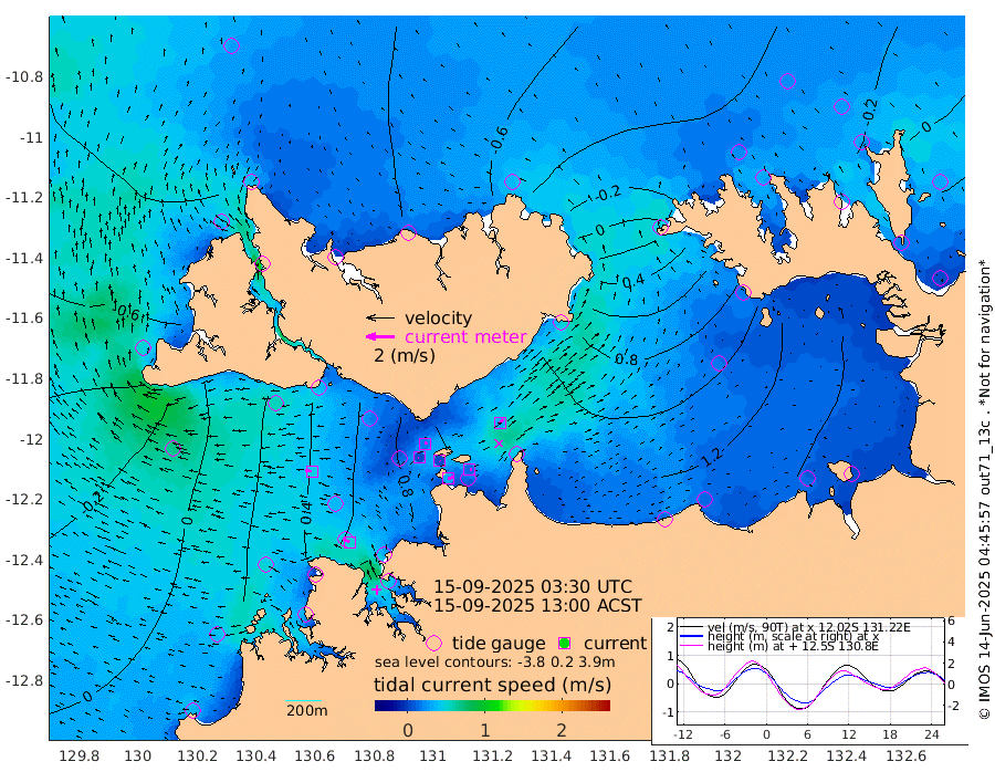 33cm/s 80T +4cm/s rms + 6cm/s 51T. Darwin_C1 52m 14cm/s 81T +4cm/s rms + 7cm/s -161T. Darwin_CW1 22m 5cm/s -86T +4cm/s rms + 8cm/s 61T. Darwin_CW2 34m 34cm/s 41T +3cm/s rms + 9cm/s 98T. Darwin_CW3 22m 3cm/s 134T +5cm/s rms + 7cm/s 88T. Darwin_C3 56m 19cm/s 62T +2cm/s rms + 9cm/s -126T. Darwin_CTbW 22m 45cm/s -86T +1cm/s rms + 1cm/s -47T. DARBGF 30m 52cm/s -54T +4cm/s rms + 3cm/s 80T. NRSDAR 19m -81cm Goodrich Bank -31cm Point Jenny -34cm Native Point -24cm Fish Reef -22cm Tapa Bay -79cm Point Fawcett (Offshore) -9cm Burge Point -38cm Munkunuwa -45cm Beagle A 5cm Parsons Bank -8cm Fenton Patches 16cm Hancox Shoal Area 0cm Nightcliff 9cm Darwin -18cm Charles Point Patches 56cm Glyde Point 112cm Chambers Bay 137cm Point Stuart 75cm Cape Hotham 99cm Christine Reef 155cm West Alligator Head 178cm East Field Island 90cm Two Hills Bay 75cm Camp Point -29cm Medina Inlet South -82cm South Barlow Point -92cm St. Asaph Bay -82cm Cape Van Dieman -79cm Snake Bay -72cm Cache Point -50cm Point Jahleel (Off) -1cm Cape Don -34cm Port Essington -35cm Smith Point - West -27cm NW Peacock Island -52cm North Of Jones Shoal -15cm Peacock Island 16cm Point David -23cm D'urville Point 23cm Copeland Island 6cm One Tree Point
