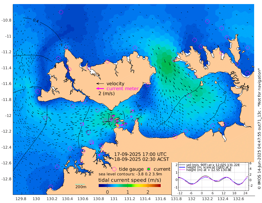 146cm/s 78T +4cm/s rms + 6cm/s 51T. Darwin_C1 52m 95cm/s 91T +4cm/s rms + 7cm/s -161T. Darwin_CW1 22m 61cm/s 73T +4cm/s rms + 8cm/s 61T. Darwin_CW2 34m 60cm/s 52T +3cm/s rms + 9cm/s 98T. Darwin_CW3 22m 76cm/s 89T +5cm/s rms + 7cm/s 88T. Darwin_C3 56m 88cm/s 65T +2cm/s rms + 9cm/s -126T. Darwin_CTbW 22m 42cm/s 88T +1cm/s rms + 1cm/s -47T. DARBGF 30m 38cm/s 116T +4cm/s rms + 3cm/s 80T. NRSDAR 19m 25cm Goodrich Bank 126cm Point Jenny 125cm Native Point 129cm Fish Reef 127cm Tapa Bay 91cm Point Fawcett (Offshore) 129cm Burge Point 125cm Munkunuwa 118cm Beagle A 116cm Parsons Bank 128cm Fenton Patches 108cm Hancox Shoal Area 126cm Nightcliff 118cm Darwin 113cm Charles Point Patches 81cm Glyde Point 47cm Chambers Bay 43cm Point Stuart 63cm Cape Hotham 48cm Christine Reef 46cm West Alligator Head 28cm East Field Island 50cm Two Hills Bay 39cm Camp Point 122cm Medina Inlet South 69cm South Barlow Point 60cm St. Asaph Bay 30cm Cape Van Dieman 28cm Snake Bay 33cm Cache Point 34cm Point Jahleel (Off) 45cm Cape Don 26cm Port Essington 31cm Smith Point - West 21cm NW Peacock Island 21cm North Of Jones Shoal 7cm Peacock Island 10cm Point David 24cm D'urville Point 8cm Copeland Island 13cm One Tree Point