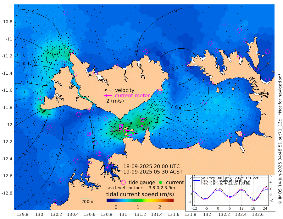 118cm/s 78T +4cm/s rms + 6cm/s 51T. Darwin_C1 52m 107cm/s 92T +4cm/s rms + 7cm/s -161T. Darwin_CW1 22m 76cm/s 72T +4cm/s rms + 8cm/s 61T. Darwin_CW2 34m 71cm/s 45T +3cm/s rms + 9cm/s 98T. Darwin_CW3 22m 116cm/s 89T +5cm/s rms + 7cm/s 88T. Darwin_C3 56m 62cm/s 66T +2cm/s rms + 9cm/s -126T. Darwin_CTbW 22m 17cm/s 68T +1cm/s rms + 1cm/s -47T. DARBGF 30m 9cm/s 94T +4cm/s rms + 3cm/s 80T. NRSDAR 19m -1cm Goodrich Bank 156cm Point Jenny 155cm Native Point 164cm Fish Reef 173cm Tapa Bay 77cm Point Fawcett (Offshore) 194cm Burge Point 161cm Munkunuwa 139cm Beagle A 171cm Parsons Bank 185cm Fenton Patches 170cm Hancox Shoal Area 185cm Nightcliff 195cm Darwin 176cm Charles Point Patches 150cm Glyde Point 127cm Chambers Bay 123cm Point Stuart 127cm Cape Hotham 117cm Christine Reef 134cm West Alligator Head 130cm East Field Island 102cm Two Hills Bay 111cm Camp Point 167cm Medina Inlet South 55cm South Barlow Point 37cm St. Asaph Bay 1cm Cape Van Dieman 2cm Snake Bay 5cm Cache Point 16cm Point Jahleel (Off) 51cm Cape Don 11cm Port Essington 8cm Smith Point - West 2cm NW Peacock Island -6cm North Of Jones Shoal -2cm Peacock Island 8cm Point David 4cm D'urville Point 8cm Copeland Island 8cm One Tree Point