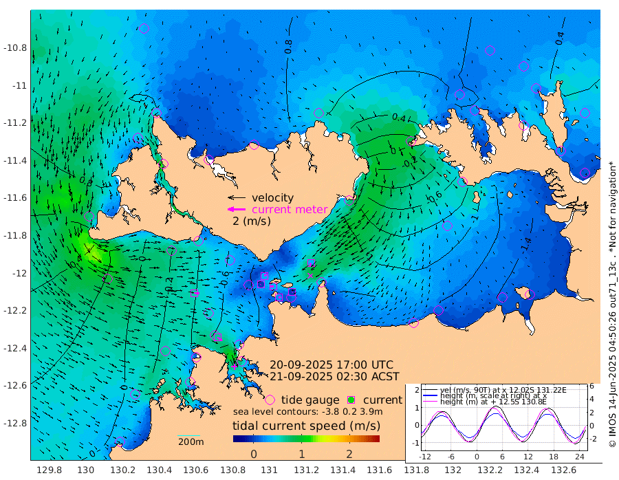 23cm/s 78T +4cm/s rms + 6cm/s 51T. Darwin_C1 52m 2cm/s 32T +4cm/s rms + 7cm/s -161T. Darwin_CW1 22m 2cm/s -119T +4cm/s rms + 8cm/s 61T. Darwin_CW2 34m 31cm/s -152T +3cm/s rms + 9cm/s 98T. Darwin_CW3 22m 35cm/s -88T +5cm/s rms + 7cm/s 88T. Darwin_C3 56m 33cm/s 62T +2cm/s rms + 9cm/s -126T. Darwin_CTbW 22m 59cm/s 97T +1cm/s rms + 1cm/s -47T. DARBGF 30m 64cm/s 127T +4cm/s rms + 3cm/s 80T. NRSDAR 19m 76cm Goodrich Bank 21cm Point Jenny 24cm Native Point 14cm Fish Reef 1cm Tapa Bay 71cm Point Fawcett (Offshore) -18cm Burge Point 13cm Munkunuwa 46cm Beagle A -25cm Parsons Bank -2cm Fenton Patches -39cm Hancox Shoal Area -21cm Nightcliff -44cm Darwin -18cm Charles Point Patches -72cm Glyde Point -129cm Chambers Bay -146cm Point Stuart -87cm Cape Hotham -112cm Christine Reef -166cm West Alligator Head -194cm East Field Island -93cm Two Hills Bay -95cm Camp Point 3cm Medina Inlet South 75cm South Barlow Point 83cm St. Asaph Bay 80cm Cape Van Dieman 77cm Snake Bay 73cm Cache Point 51cm Point Jahleel (Off) 4cm Cape Don 40cm Port Essington 49cm Smith Point - West 41cm NW Peacock Island 54cm North Of Jones Shoal 17cm Peacock Island 3cm Point David 42cm D'urville Point -2cm Copeland Island 8cm One Tree Point