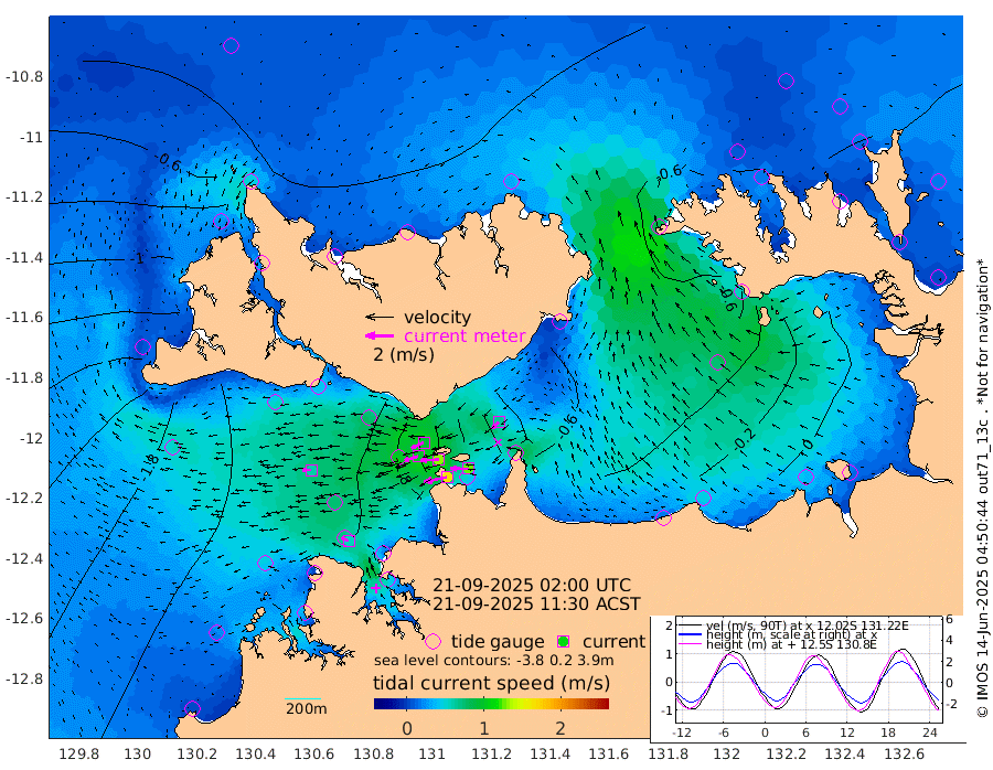 165cm/s -102T +4cm/s rms + 6cm/s 51T. Darwin_C1 52m 127cm/s -90T +4cm/s rms + 7cm/s -161T. Darwin_CW1 22m 99cm/s -107T +4cm/s rms + 8cm/s 61T. Darwin_CW2 34m 67cm/s -133T +3cm/s rms + 9cm/s 98T. Darwin_CW3 22m 130cm/s -91T +5cm/s rms + 7cm/s 88T. Darwin_C3 56m 94cm/s -115T +2cm/s rms + 9cm/s -126T. Darwin_CTbW 22m 61cm/s -92T +1cm/s rms + 1cm/s -47T. DARBGF 30m 55cm/s -63T +4cm/s rms + 3cm/s 80T. NRSDAR 19m -19cm Goodrich Bank -199cm Point Jenny -197cm Native Point -221cm Fish Reef -217cm Tapa Bay -123cm Point Fawcett (Offshore) -234cm Burge Point -214cm Munkunuwa -188cm Beagle A -223cm Parsons Bank -231cm Fenton Patches -209cm Hancox Shoal Area -230cm Nightcliff -239cm Darwin -224cm Charles Point Patches -151cm Glyde Point -80cm Chambers Bay -68cm Point Stuart -119cm Cape Hotham -71cm Christine Reef -66cm West Alligator Head -37cm East Field Island -79cm Two Hills Bay -75cm Camp Point -217cm Medina Inlet South -106cm South Barlow Point -75cm St. Asaph Bay -27cm Cape Van Dieman -31cm Snake Bay -29cm Cache Point -39cm Point Jahleel (Off) -71cm Cape Don -47cm Port Essington -50cm Smith Point - West -42cm NW Peacock Island -29cm North Of Jones Shoal -12cm Peacock Island -47cm Point David -50cm D'urville Point -49cm Copeland Island -48cm One Tree Point