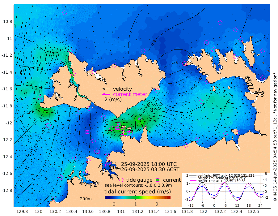 113cm/s -100T +4cm/s rms + 6cm/s 51T. Darwin_C1 52m 98cm/s -91T +4cm/s rms + 7cm/s -161T. Darwin_CW1 22m 64cm/s -106T +4cm/s rms + 8cm/s 61T. Darwin_CW2 34m 64cm/s -135T +3cm/s rms + 9cm/s 98T. Darwin_CW3 22m 123cm/s -91T +5cm/s rms + 7cm/s 88T. Darwin_C3 56m 57cm/s -116T +2cm/s rms + 9cm/s -126T. Darwin_CTbW 22m 15cm/s 117T +1cm/s rms + 1cm/s -47T. DARBGF 30m 23cm/s 149T +4cm/s rms + 3cm/s 80T. NRSDAR 19m 75cm Goodrich Bank -58cm Point Jenny -55cm Native Point -75cm Fish Reef -86cm Tapa Bay 19cm Point Fawcett (Offshore) -94cm Burge Point -83cm Munkunuwa -23cm Beagle A -115cm Parsons Bank -84cm Fenton Patches -119cm Hancox Shoal Area -111cm Nightcliff -135cm Darwin -103cm Charles Point Patches -111cm Glyde Point -124cm Chambers Bay -131cm Point Stuart -105cm Cape Hotham -103cm Christine Reef -147cm West Alligator Head -148cm East Field Island -97cm Two Hills Bay -86cm Camp Point -88cm Medina Inlet South 27cm South Barlow Point 52cm St. Asaph Bay 75cm Cape Van Dieman 67cm Snake Bay 70cm Cache Point 43cm Point Jahleel (Off) -15cm Cape Don 27cm Port Essington 29cm Smith Point - West 30cm NW Peacock Island 47cm North Of Jones Shoal 14cm Peacock Island -3cm Point David 24cm D'urville Point -9cm Copeland Island 1cm One Tree Point